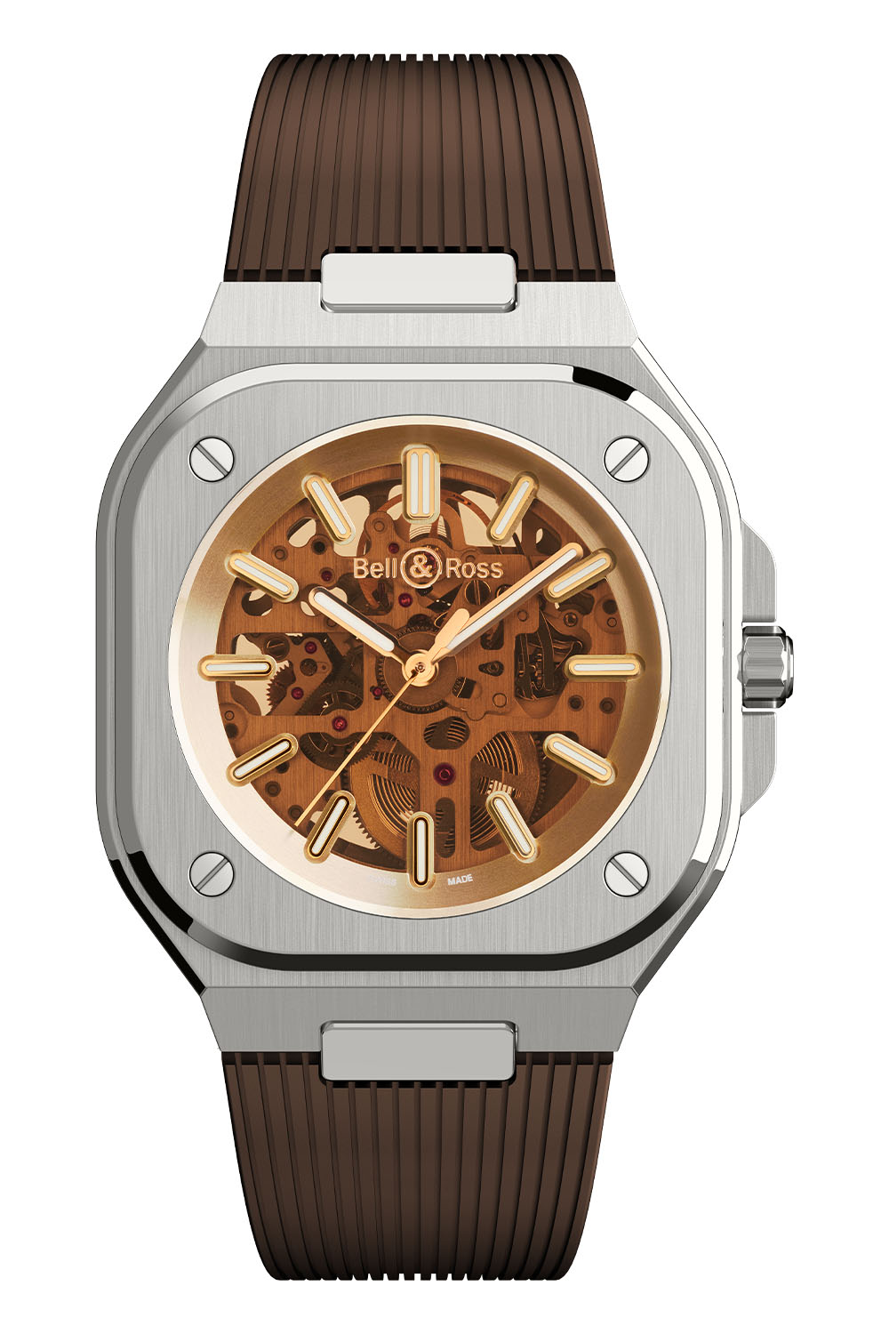 The new Bell & Ross BR 05 Skeleton Golden is released as a limited edition of 500 pieces, available either with an integrated stainless steel bracelet, with a folding clasp or a striped brown rubber strap, also with a folding clasp. Available now for pre-order with deliveries in March 2023, the watches will be priced at EUR 6,900 on a rubber strap and EUR 7,400 on a steel bracelet. For more details, please visit bellross.com.