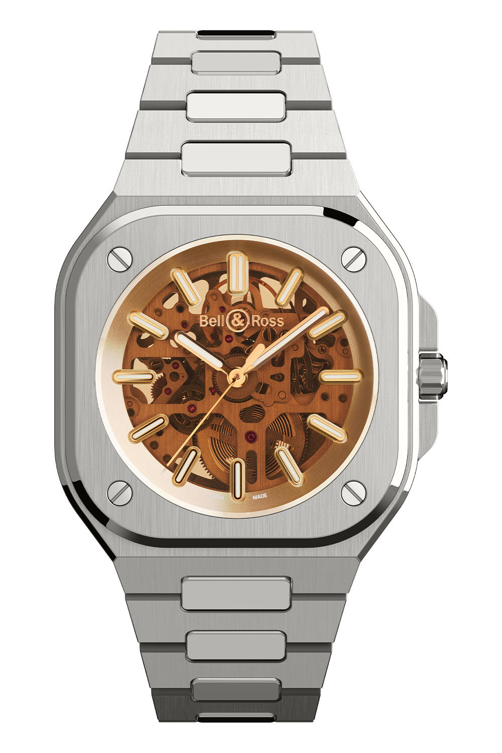 When launched in 2019, the Bell & Ross BR 05 collection was, without a doubt, the most important release of the brand since the presentation of the emblematic BR 01 – the watch that defined the brand’s style, the circle within a square. While most of the previous collections were focused on military and aviation inspirations, the BR 05 steered the brand into luxury sports watch territories with a far more urban vocation. Since then, we’ve seen multiple iterations with a chronograph, a GMT or a bolder experimental style. A recurring theme of the BR 05 collection has been the skeleton watch, which today comes in a new colour with a steel case and a golden dial.