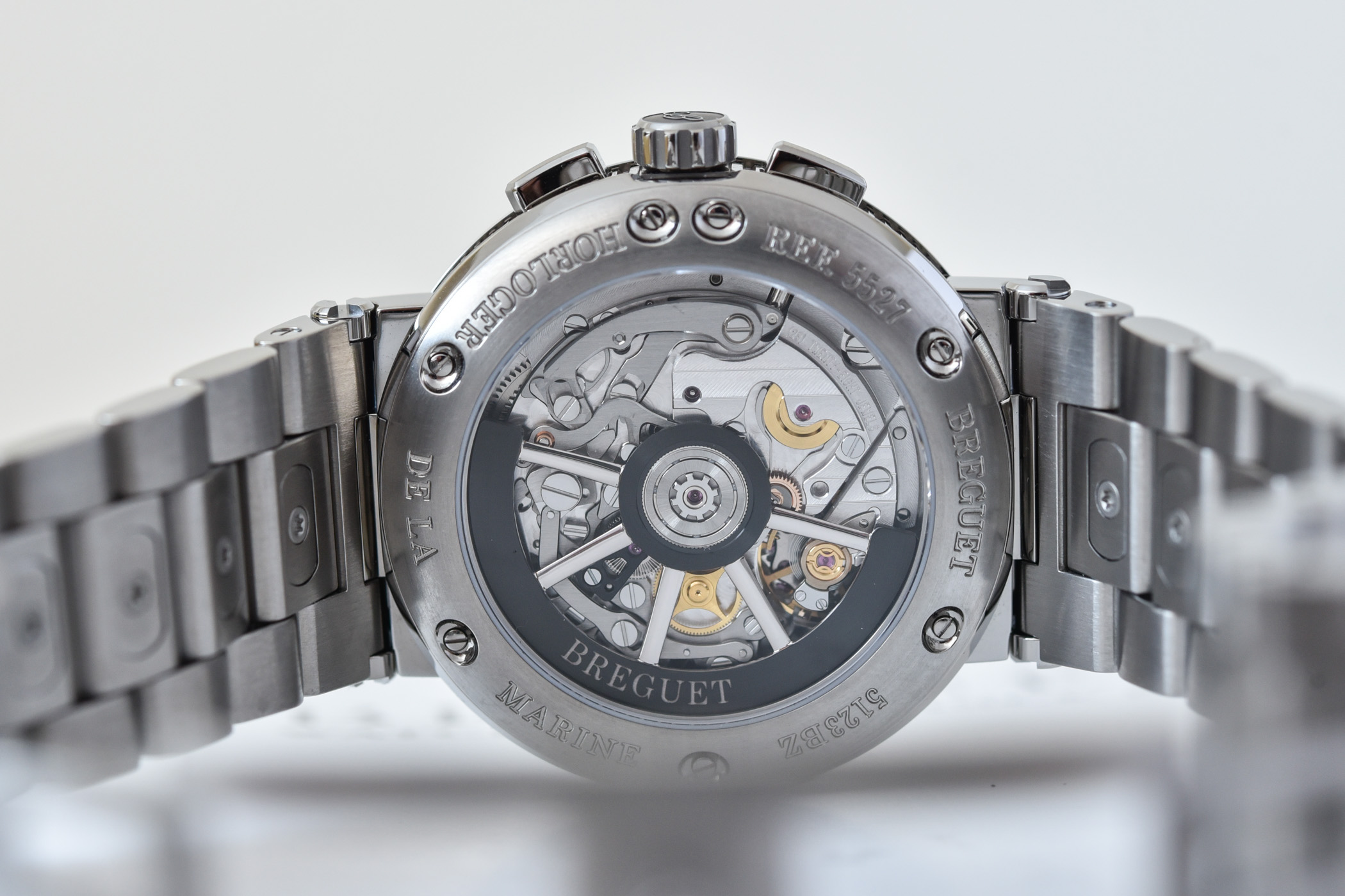 The design of this new collection was bold, more contemporary, yet still respectful of Breguet’s ethos. Although it represents the sporty-ish side of the brand, it was a far cry from an instrument watch. It still featured elaborate guilloché dials, fluted casebands and highly decorated movements. The most striking element of this new collection was the juxtaposition of a classic round case with bold, integrated lug modules, as well as wave-shaped crown protectors.