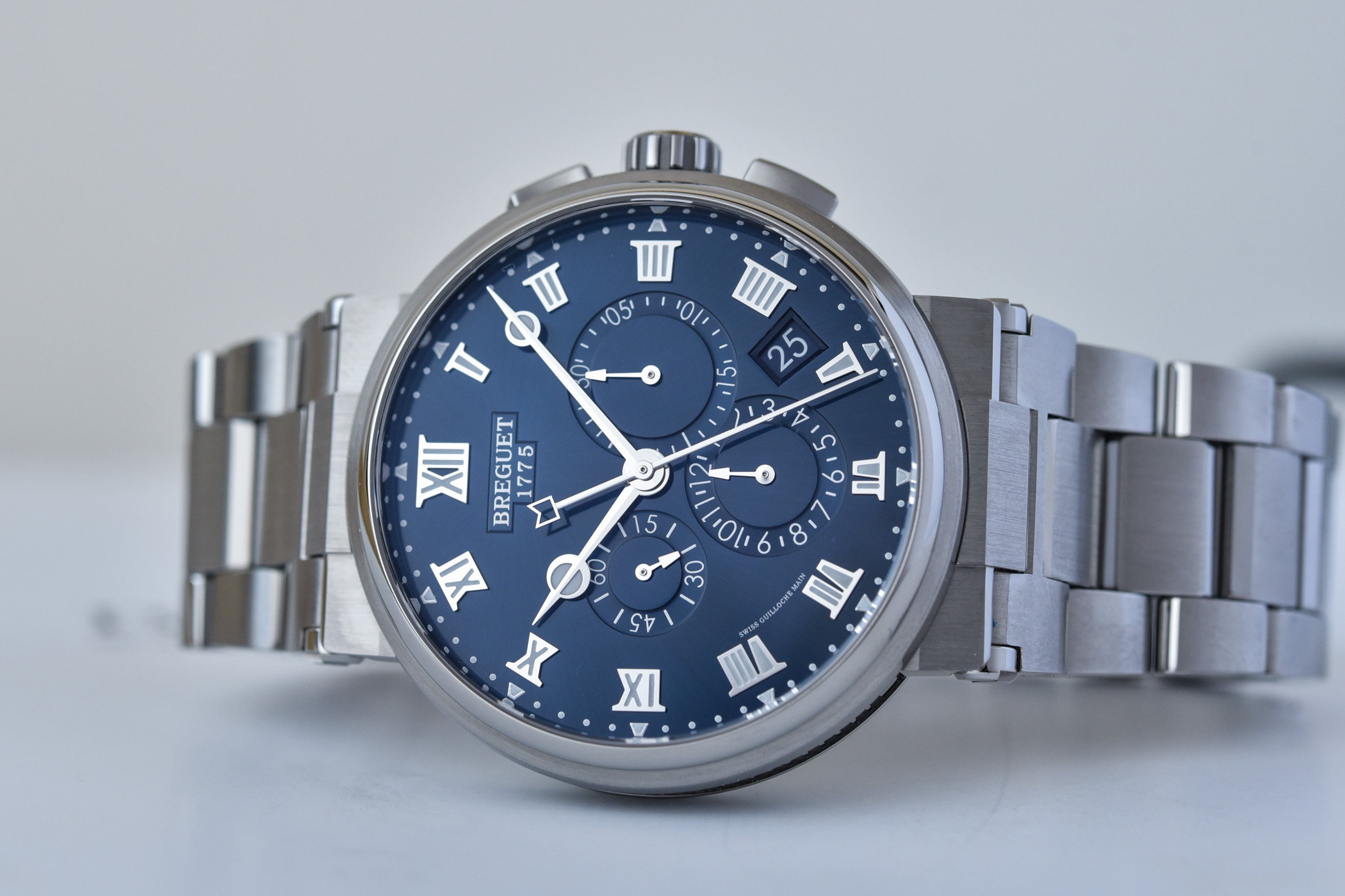 Widely known for his technical innovations, such as the tourbillon or the perpetual calendar (and many more), as well as being one of the most prolific watchmakers of its times, Abraham-Louis Breguet was also appointed official chronometer-maker to the French Royal Navy, the most prestigious title to which a horologist could aspire. Moreover, his high-precision marine chronometers, which allowed ships to calculate their position at sea, were of vital importance to France’s fleets. This nautical background led the brand to the creation in 1990 of the modern Marine Collection. Revisited in 2005 with a sportier vibe, the brand introduced a whole new Breguet Marine collection in 2017/2018 with first the hyper-complicated Marine Équation Marchante 5887, followed by the Marine 5517, 5527, and 5547, respectively time-and-date, chronograph and alarm watches.