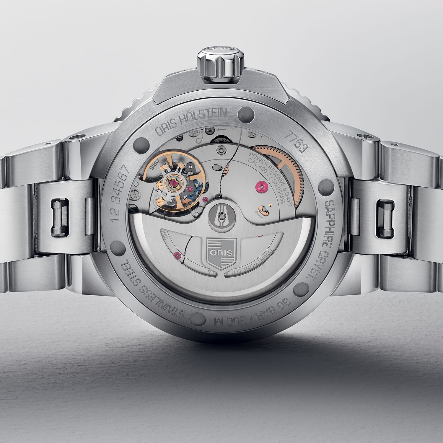 The Aquis Date 43.5mm was the first model to be equipped with the brand’s proprietary calibre 400 in 2020. Like the powerful 10-day, hand-wound calibre 110, conceived in-house by Oris in 2014 and used in its high-end models, the Oris Calibre 400 is a proprietary manufacture movement. Developed entirely in-house by COO Beat Fischli and his team, the mandates were for a high-performance and anti-magnetic movement to keep pace with consumers’ lifestyles for longer periods of time. Produced by a network of suppliers with state-of-the-art industrial techniques, calibre 400 is a robust automatic anti-magnetic movement with a five-day power reserve and a 10-year warranty.