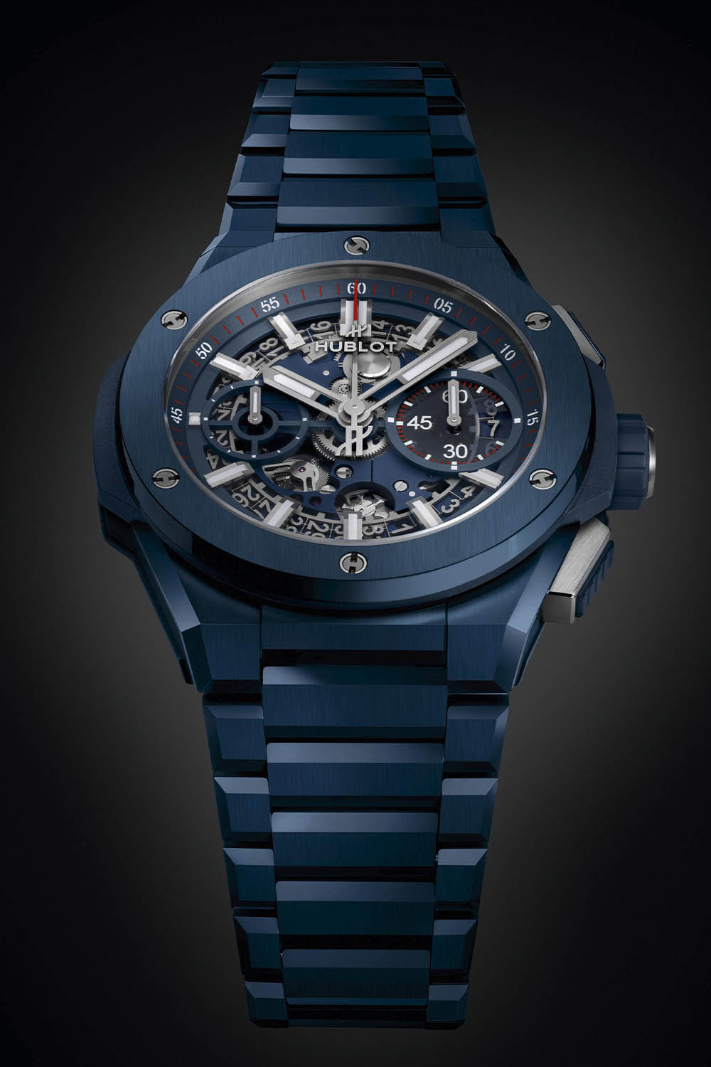 Quick Facts: white, blue or grey ceramic case – 42mm x 13.45mm – water-resistant to 100m – automatic calibre HUB1280 Unico – 72-hour power reserve – ceramic bracelet with titanium folding buckle – references 451.HX.1123.HX (white ceramic), 451.EX.5123.EX (blue ceramic), 451.FX.6923.FX (grey ceramic) – all priced at EUR 22,700