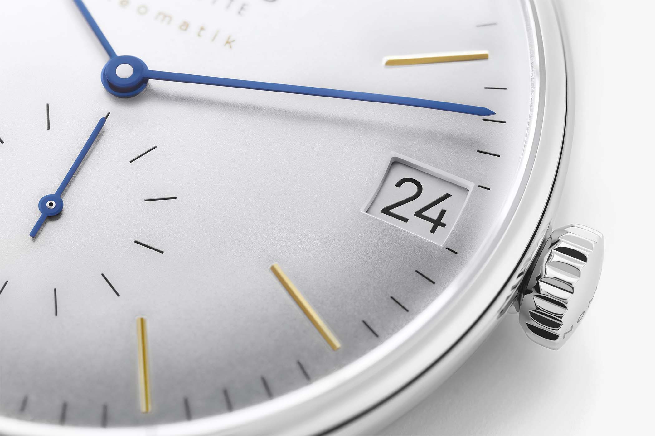 Inside the case, all three versions have a calibre named the Neomatik, the brand’s vision of a thin and efficient automatic movement. The smaller watches have calibre DUW 3001, while the larger date model has calibre DUW 6101 – but the technical base remains identical. This means a 3Hz frequency, about 42 hours of power reserve and a fine decoration that includes thin stripes, diamond-cut edges, thermally blued screws and golden lettering.