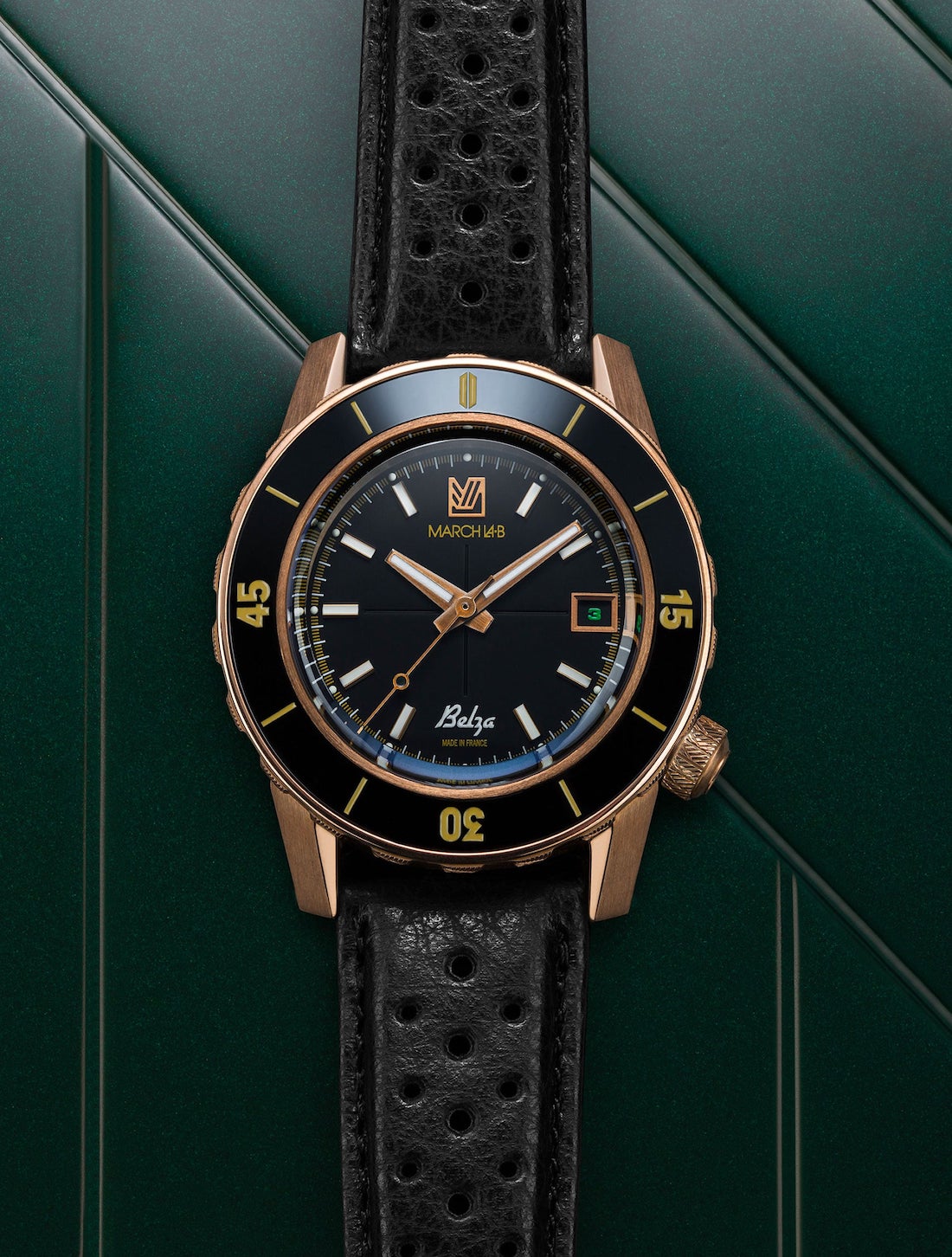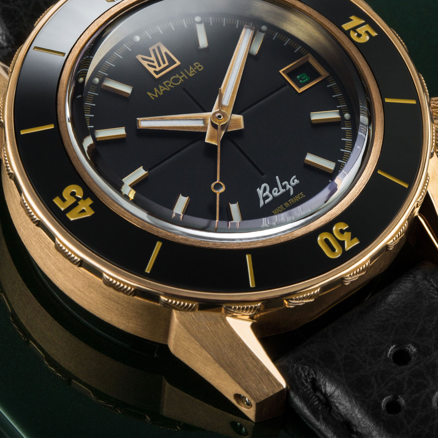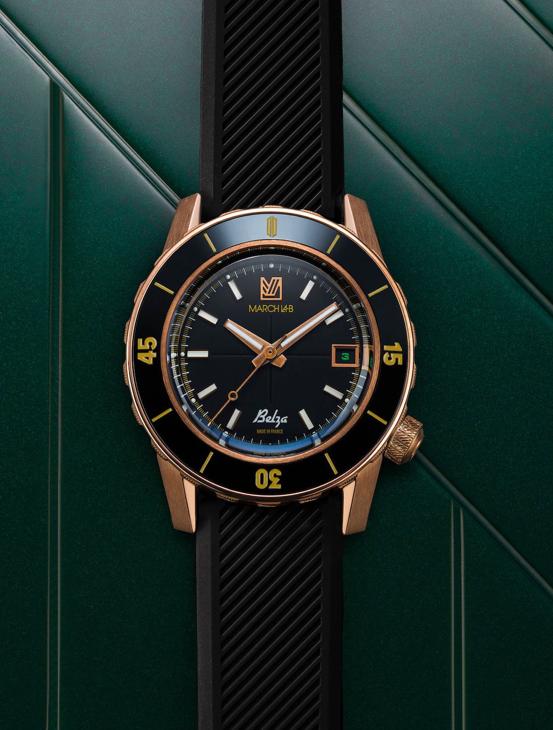 Part of the nouvelle vague of watch brands born in France, March LAB was created in 2008 with a focus on design and vintage inspiration. A distinguishing element that has to do with the founders’ origins is France’s Atlantic coast; to be precise, France’s top surf spot on the Basque Country’s coastline. Moving from a surf brand to the Swiss Jura to create watches, Alain Marhi kept his love for the board and translated his passion into March LAB’s dive watch, the Belza. The latest edition, the Belza Bronze Automatic, certainly has personality.