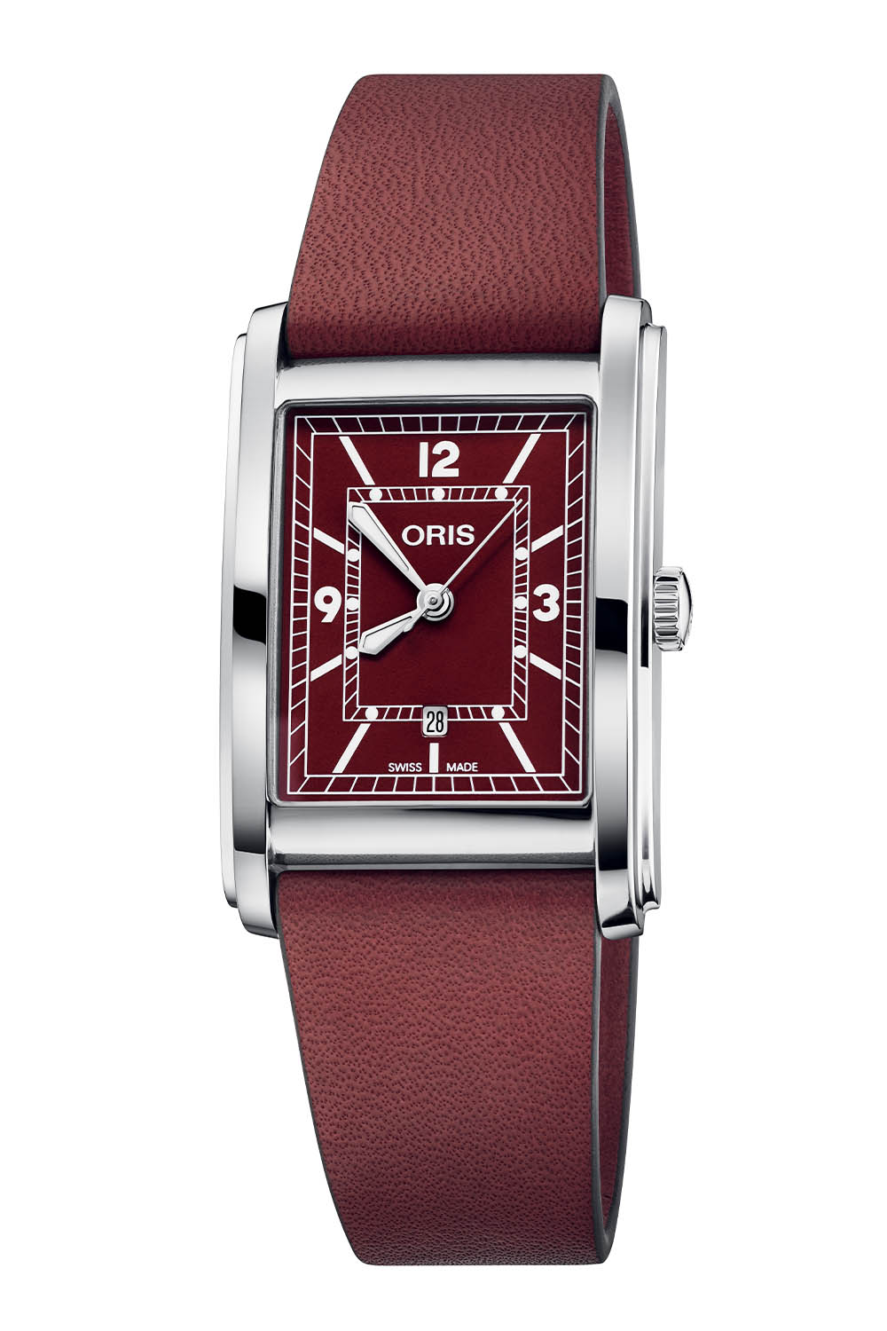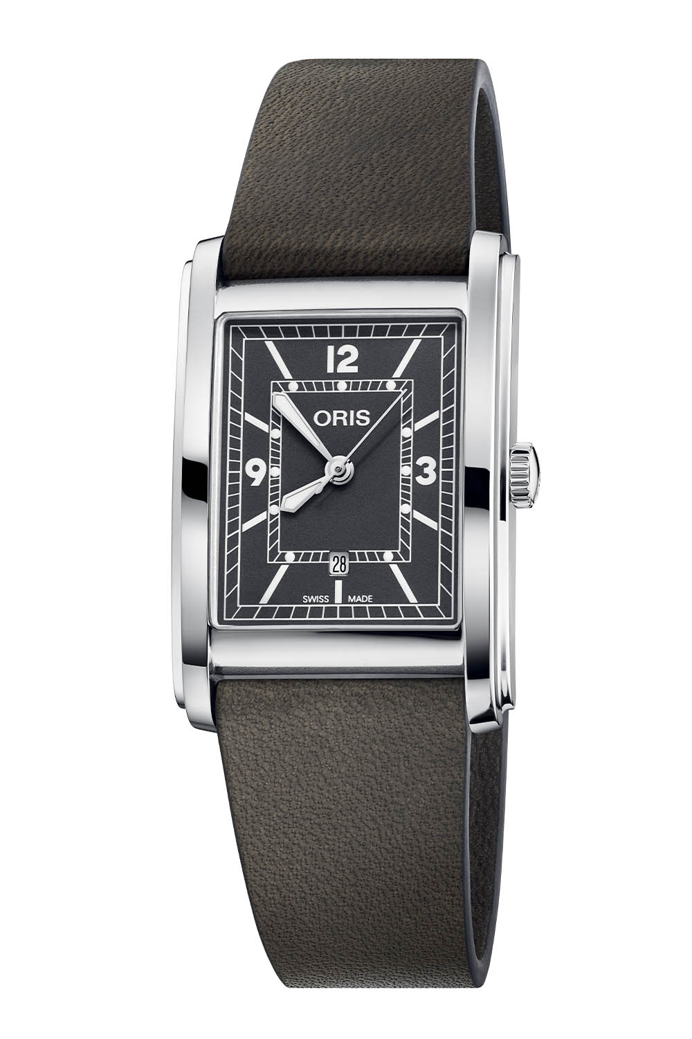 Inside the new Rectangular models is Oris calibre 561, a Swiss-made automatic time-and-date movement with an ETA 2671 base, a power reserve of 38 hours, instantaneous date and stop-seconds. The mineral glass caseback allows a view of the movement.