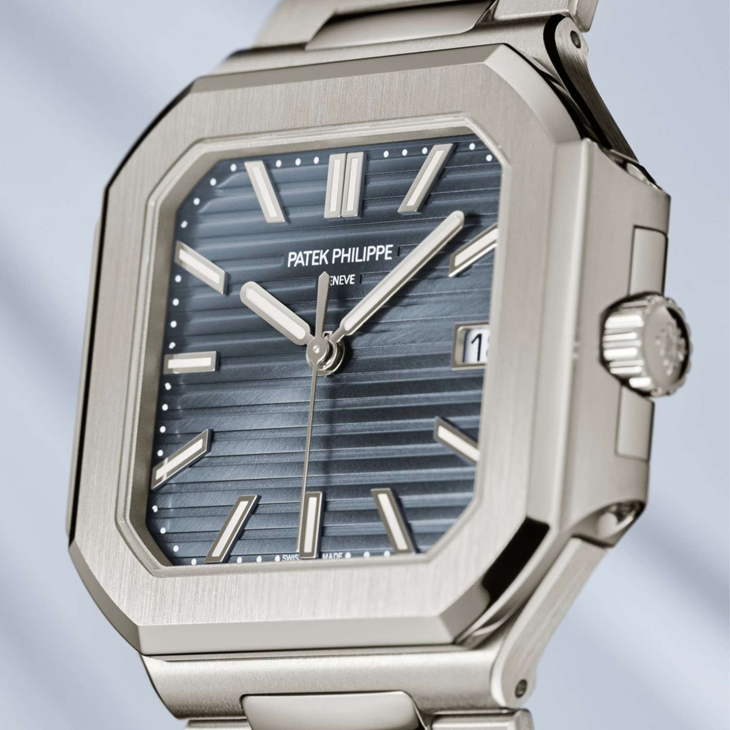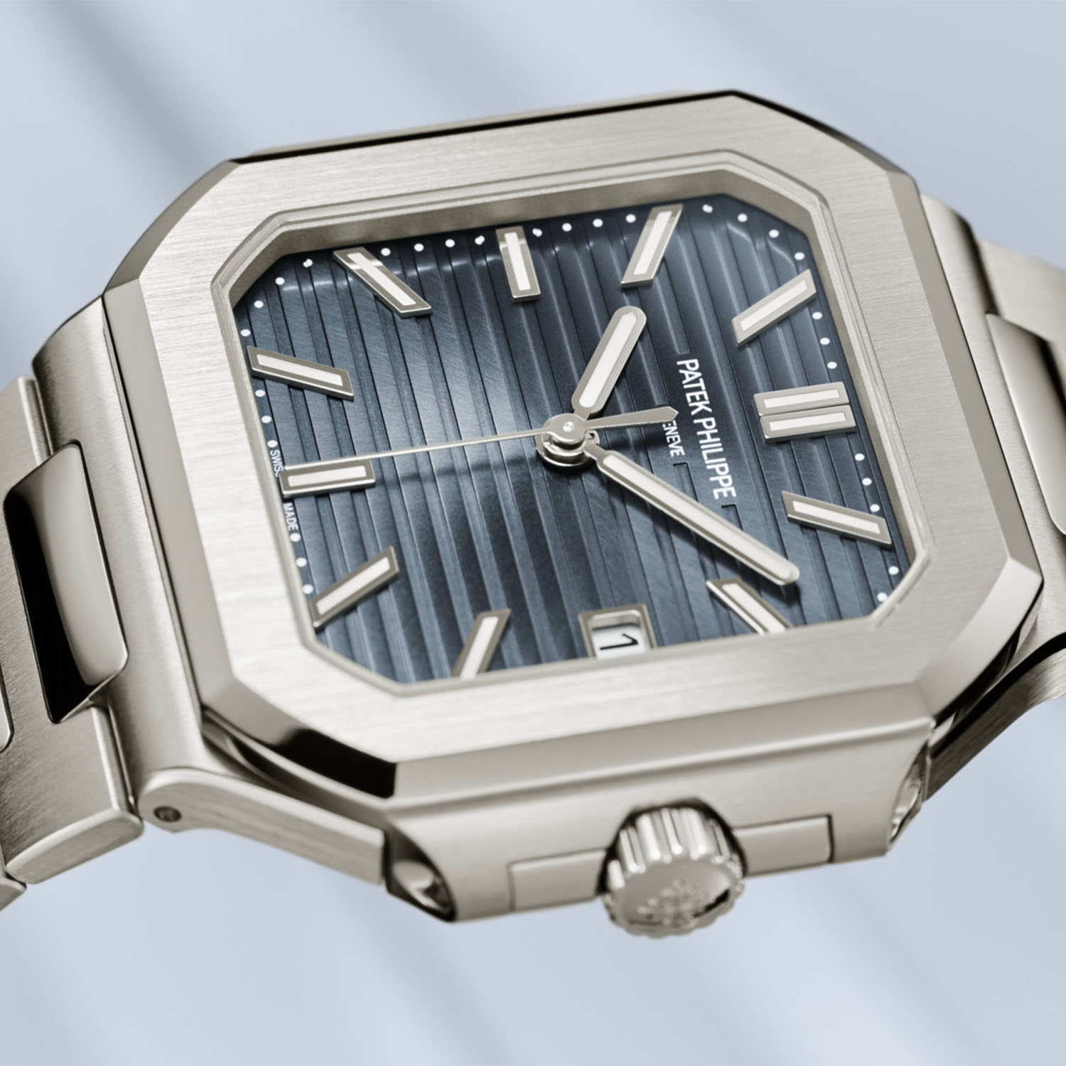 The new Cubitus collection of sporty-chic watches by Patek Philippe was the most anticipated launch of last year but also the most discussed and commented new release of 2024. Initially released in steel, steel and gold two-tone 45mm by 8.3mm case as Cubitus 5821 time and date reference on a matching metal bracelet and as 5822P with moon phase, instantaneous day of the week and instantaneous big date on a navy blue strap sharing the same dimensions of 45mm across, the time and date model is now presented in a midsize version encased in white or rose gold. Meet the new 40mm Cubitus 7128.
