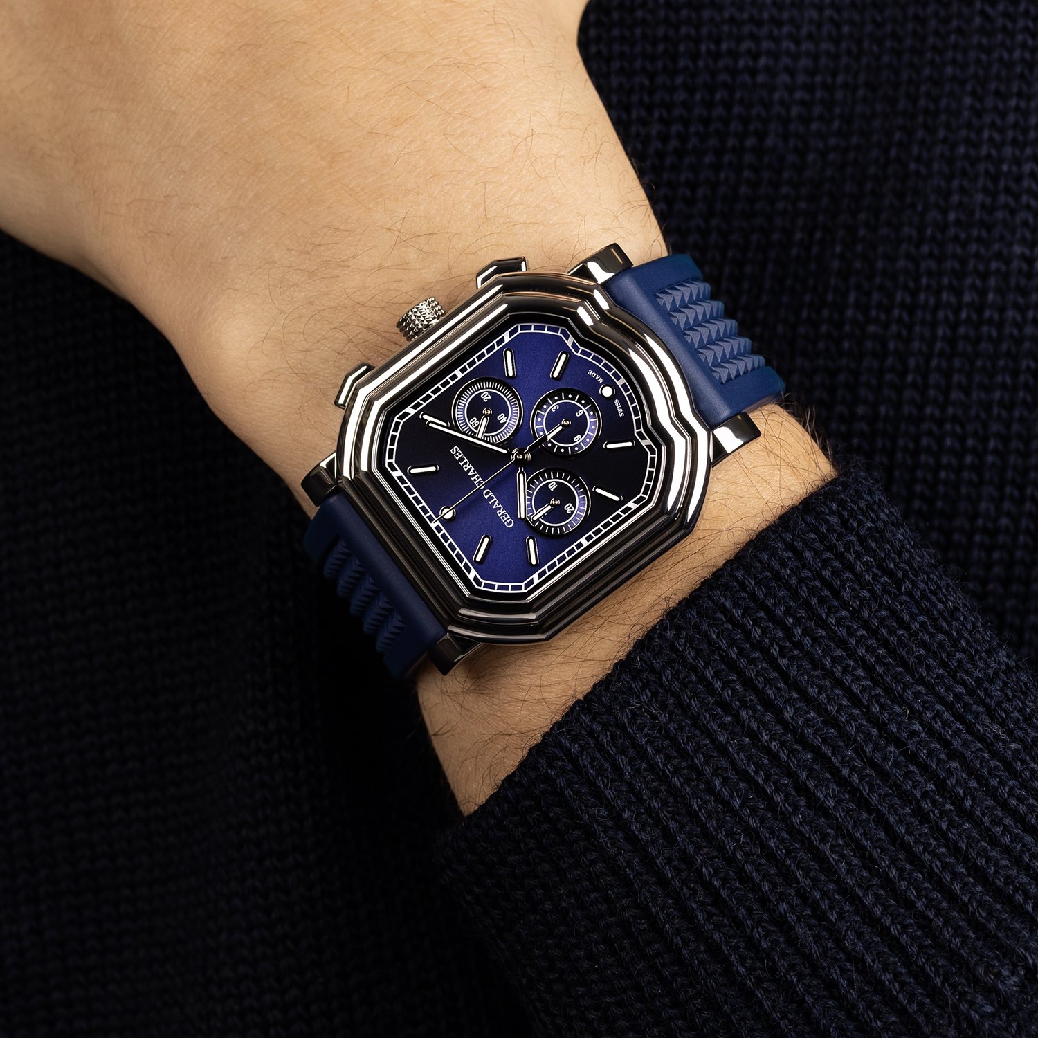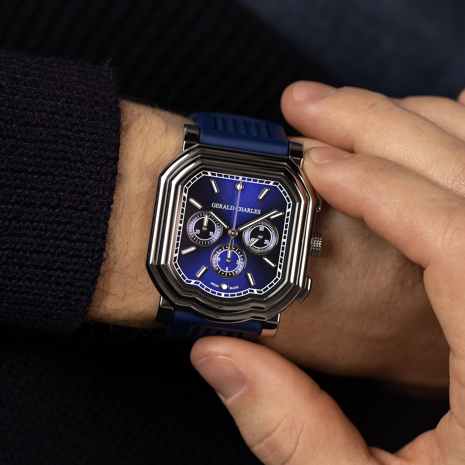 The name Gerald Charles might not ring a bell immediately. However, if I say Gerald Genta, this might be far clearer… Indeed, behind the GC brand was the genius designer of many emblematic watches, which he established after selling his eponymous brand to Bulgari. With Gerald Charles, Genta continued to produce watches and to create singular designs, one of them being the Maestro. And more than a decade after he passed away, the brand still exists. The model in question is the collection’s cornerstone, which now returns in the shape of a lightweight, high-end automatic chronograph combining a striking Royal Blue dial with a polished titanium case. Here’s the new Gerald Charles Maestro GC3.0-TN Chronograph.