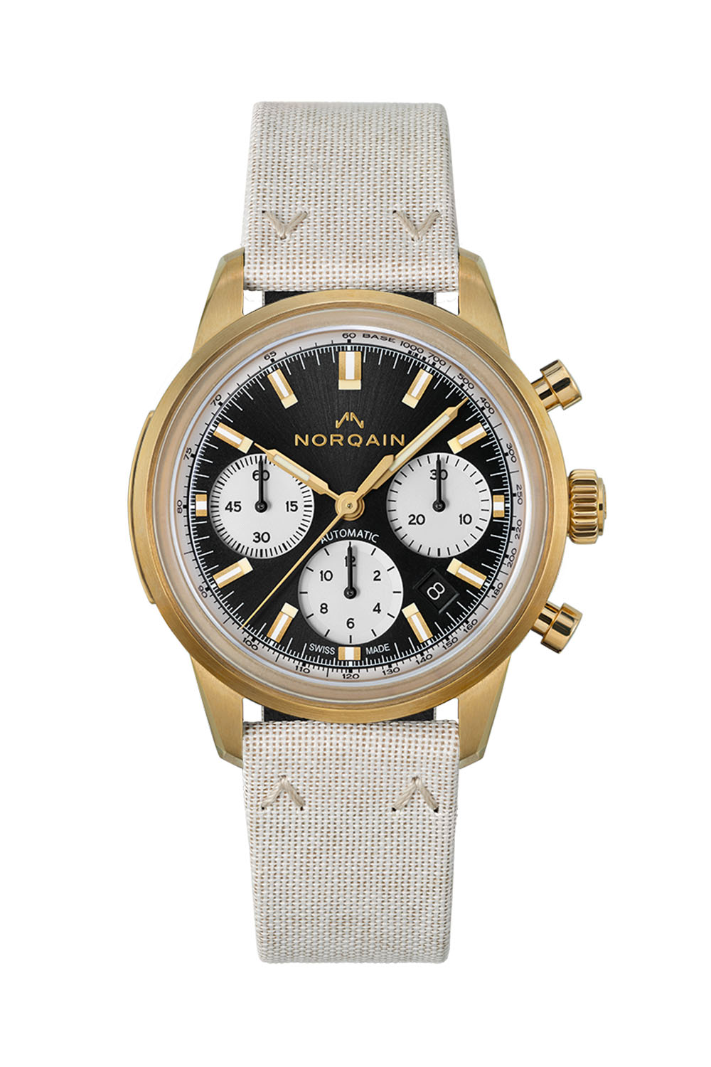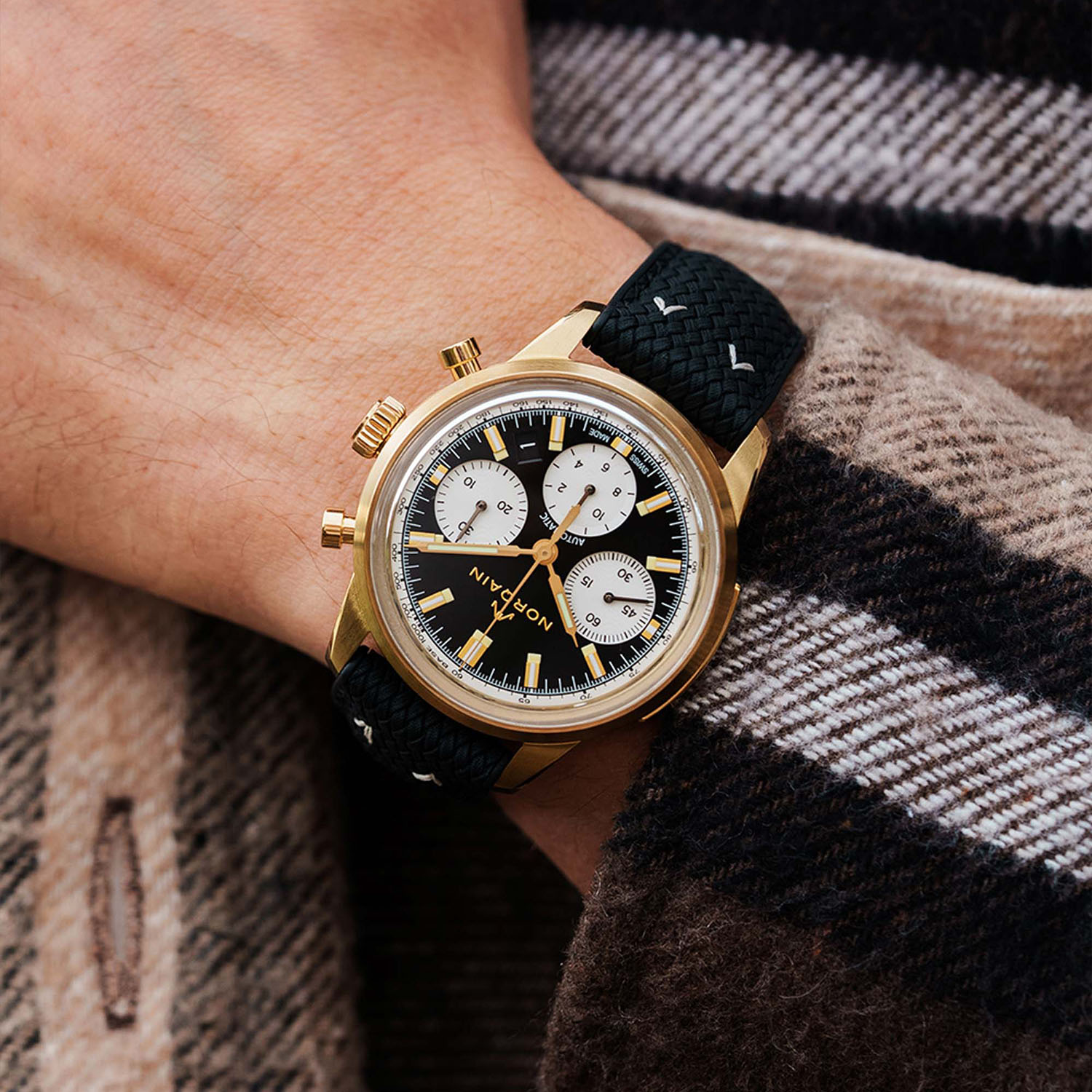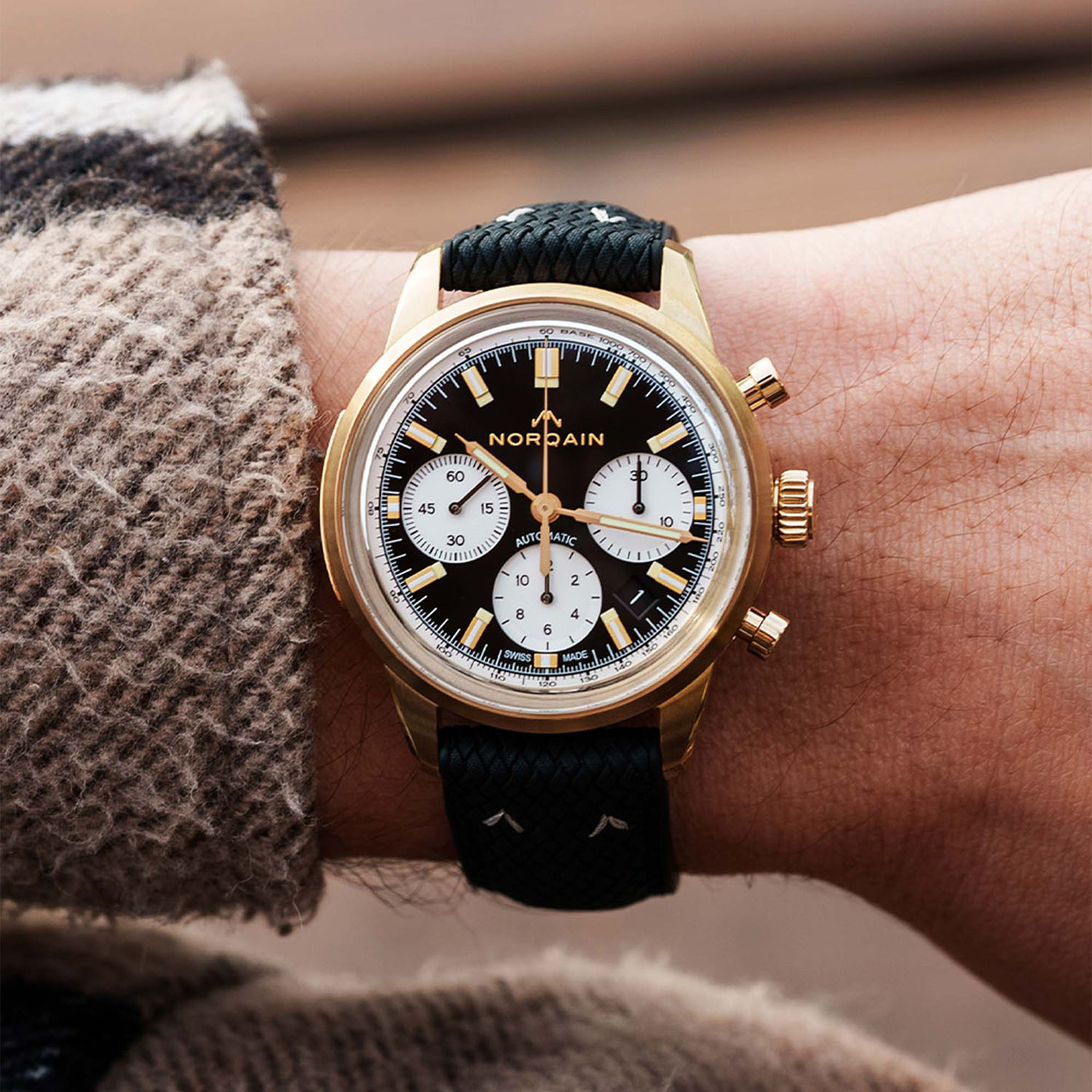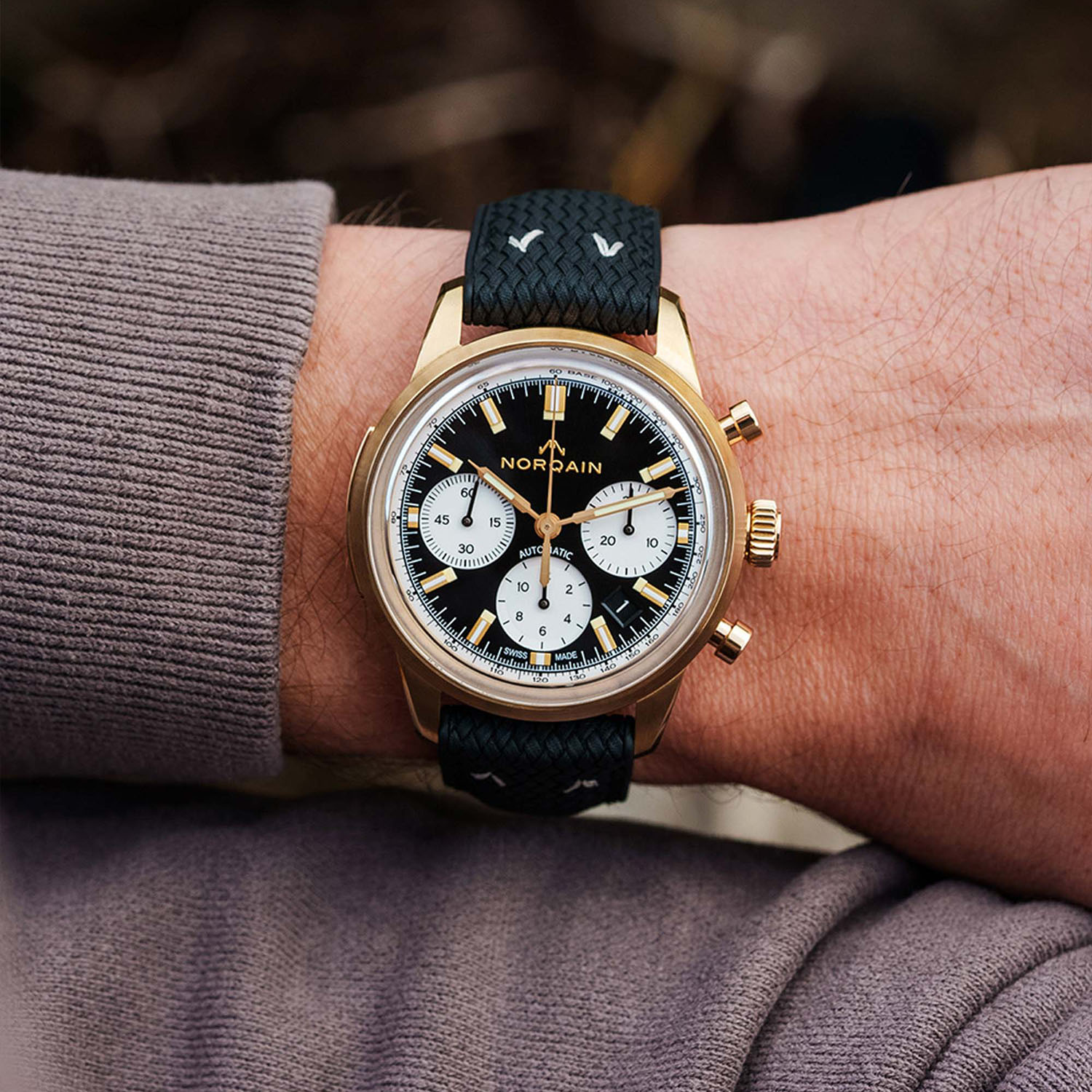 Even though it’s a relatively young brand, Norqain has demonstrated to be quite a player in the field of robust, fully equipped sports watches. With many watches powered by Kenissi-sourced manufacture movements and even innovative case constructions, there’s quite a lot to discover about the brand. Today’s release is less groundbreaking, yet it introduces a cool new watch to the collection in a style that is slowly becoming a signature for the brand. Reversed panda dial and bronze case, this is the menu for the latest edition of the Norqain Freedom 60 Chrono 40mm.
