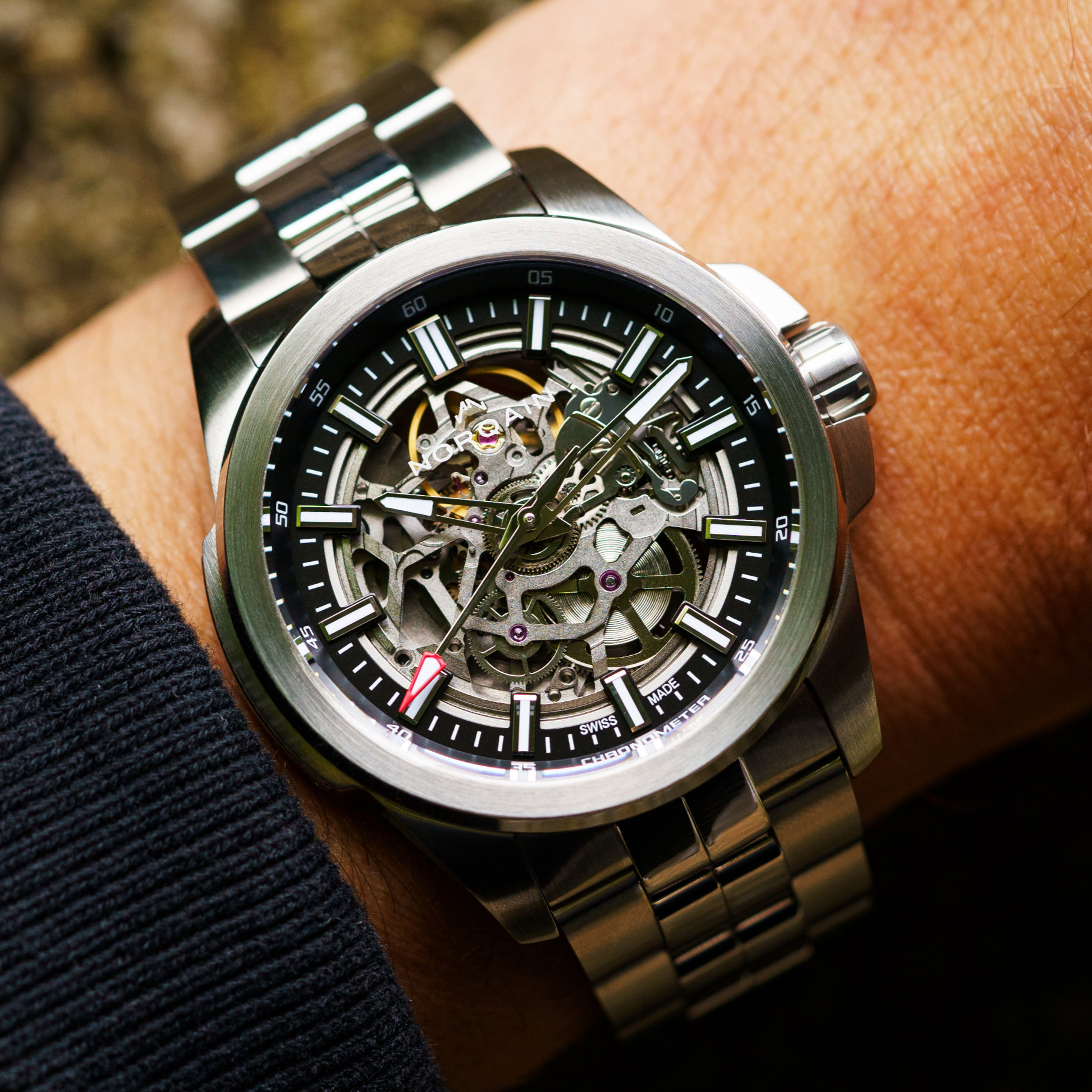 The Norqain Independence 22 Skeleton comes on the same stainless steel bracelet we’ve seen on the non-skeletonized Independence collection. This three-link bracelet is brushed and polished and comes with a folding clasp. It retails for CHF 3,790 and Norqain states 300 pieces of the Independence 22 are available but doesn’t communicate on the Independence 22 Skeleton’s limitation if there is any. It does state however that more will be built depending on demand.