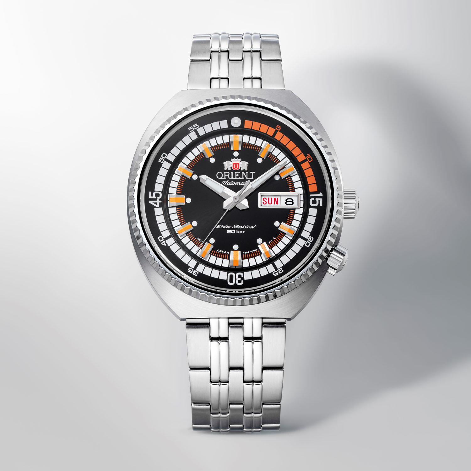 The early 1970s were a time of high economic growth and vitality in every field for Japan, and gave birth to fresh designs filled with fun and cool. During this period, Orient established a distinctive style based on unique concepts, gaining many fans. The Neo Classic Sports is a watch inspired by the iconic Orient models of the period, with a distinctive design on the dial and case, but with a modern twist in other areas.