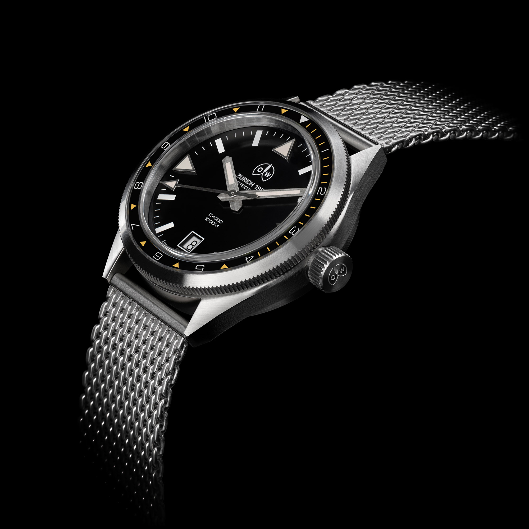 The first 56 watches are numbered crown editions and are equipped with the reliable and fully overhauled ETA 2824-2 automatic movement, the last of OW’s remaining stock. Since the ETA 2824-2 has played an important role in Ollech & Wajs’s history, current CEO Charles Le Menestrel thought it would be a fitting gesture to pair the first 56 anniversary watches with this vintage NOS movement. Following this first batch, the C-1000 A will be powered by a bespoke Soprod Newton Precision P092 automatic movement.