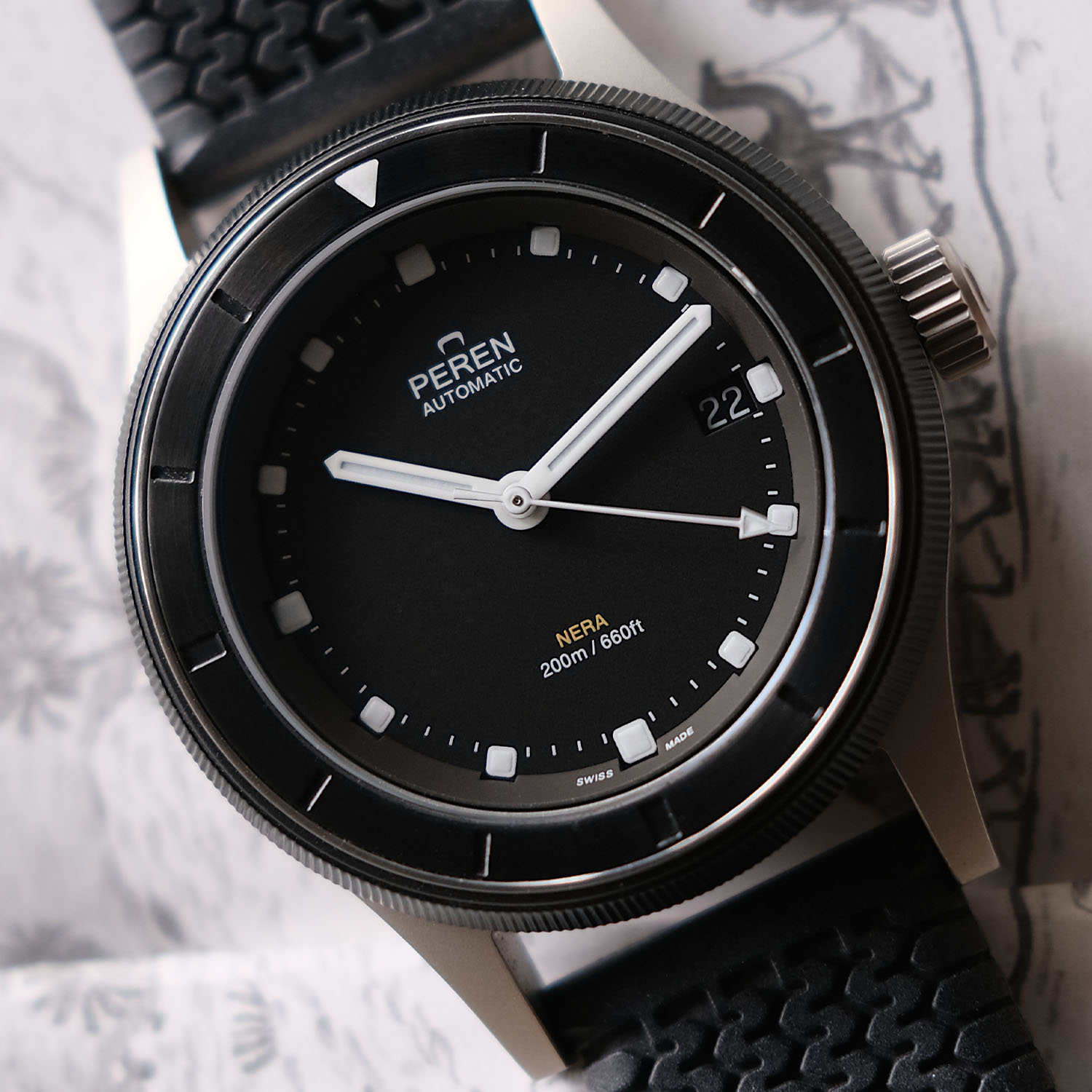 We looked at Peren’s Nera Rogue diver last year and were impressed with its unique design and minimalist approach. It was inspired by a very rare 1960s Blancpain diver produced under an alias, Tornek Rayville. The “Tornek Rayville TR-900” was made for the US Navy Seals, and Blancpain used the alias to bend the rules that favoured domestic production for military use. Peren reimagined the design with its own flavour blended in, and the latest Nera Rogue BW is a stealthy version with a contemporary vibe. It’s an under-the-radar piece for sure and very different from the more conventional yet equally impressive Peren Hintz.