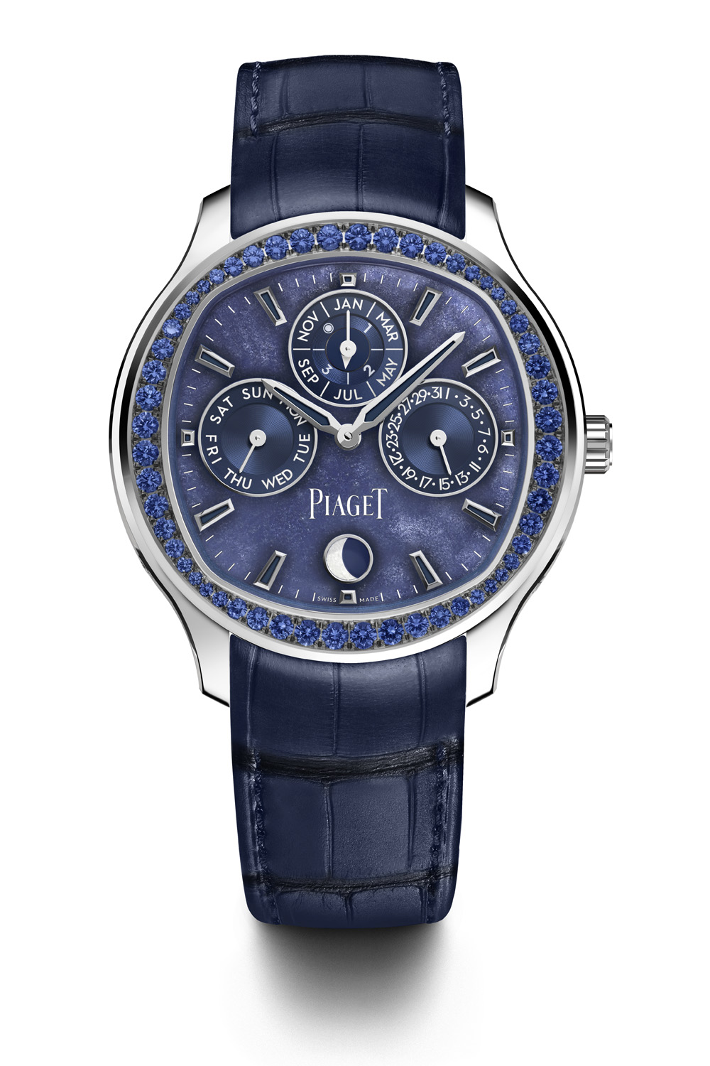 The movement powering the perpetual calendar functions is Piaget’s in-house calibre 1255, based on Piaget’s famous, ultra-thin (2.35mm) 1200P automatic calibre with a perpetual calendar module. Thanks to the incorporation of a micro-rotor, this automatic movement has a thickness of just 4mm. With a frequency of 21,600vph and a power reserve of 42 hours, the perpetual calendar function won’t need adjusting until 2100.