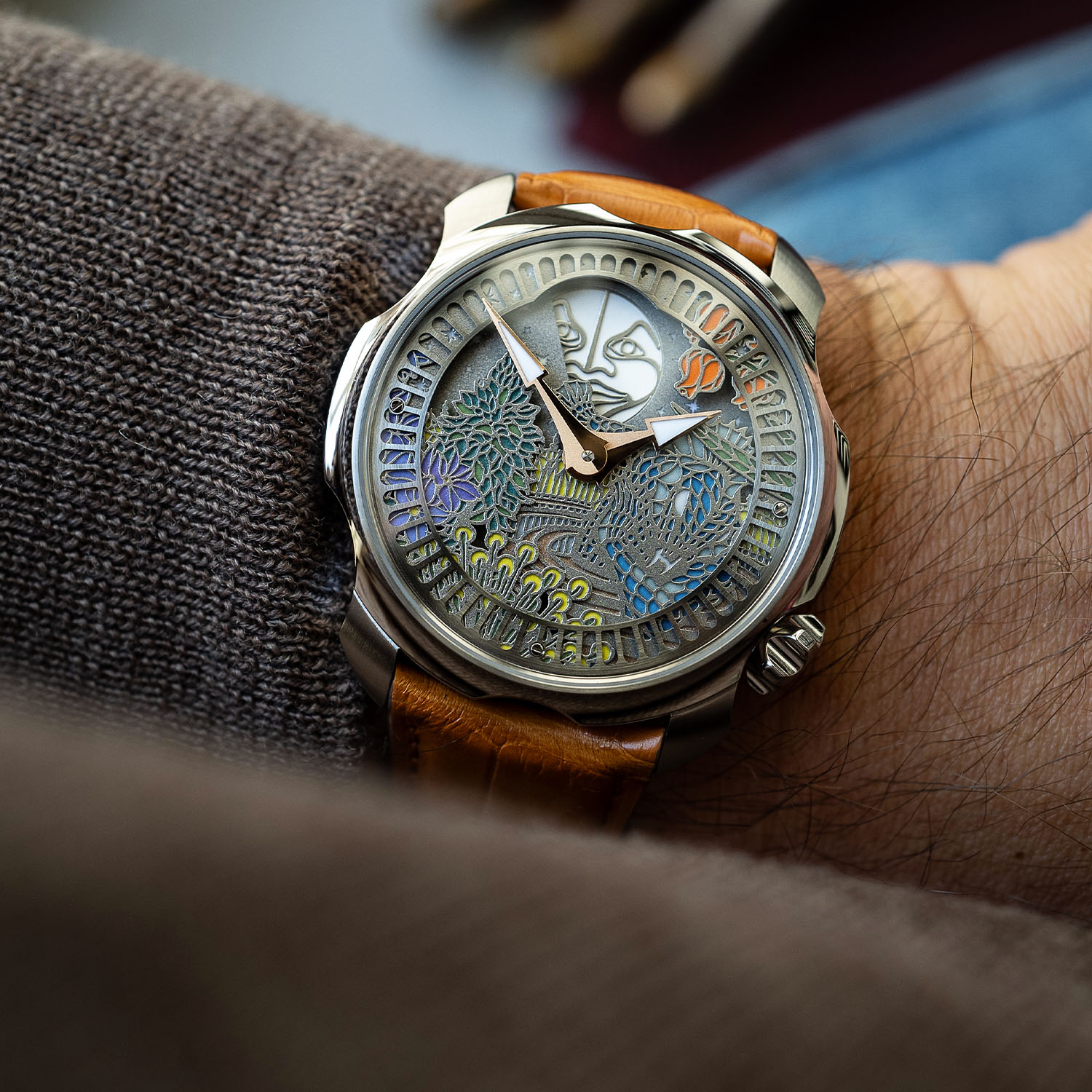 Probably the most famous watchmaker to come from Finland, together with his fellow Kari Voutilainen, Stepan Sarpaneva has recently presented several watches that pay tribute to legends of his country. While still highly distinctive and in line with previous his creations, watches such as the Moomin or the Kilpisjärvi, a collaboration with F1 pilot Valtteri Bottas. Sarpaneva’s latest watch is all about an enigmatic creature from Scandinavian folklore, a water spirit known as Näkki. And it has found its place on the dial of Stepan’s watch, resulting in a combination of typical elements of his past, a necessary intrusion of the Moon and probably one of his most complex dials ever.