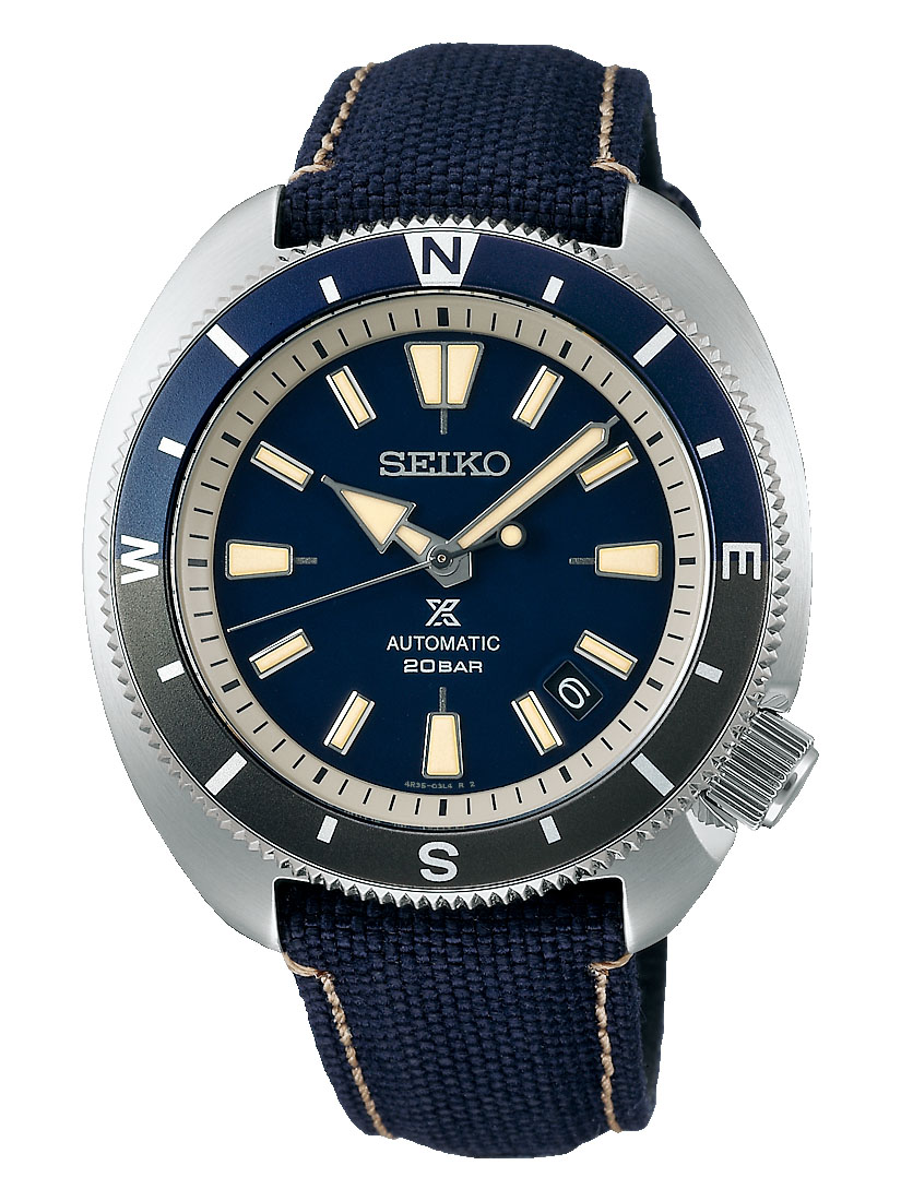 - SRPG15K1 – steel case, blue dial, blue/grey bezel, blue textile strap