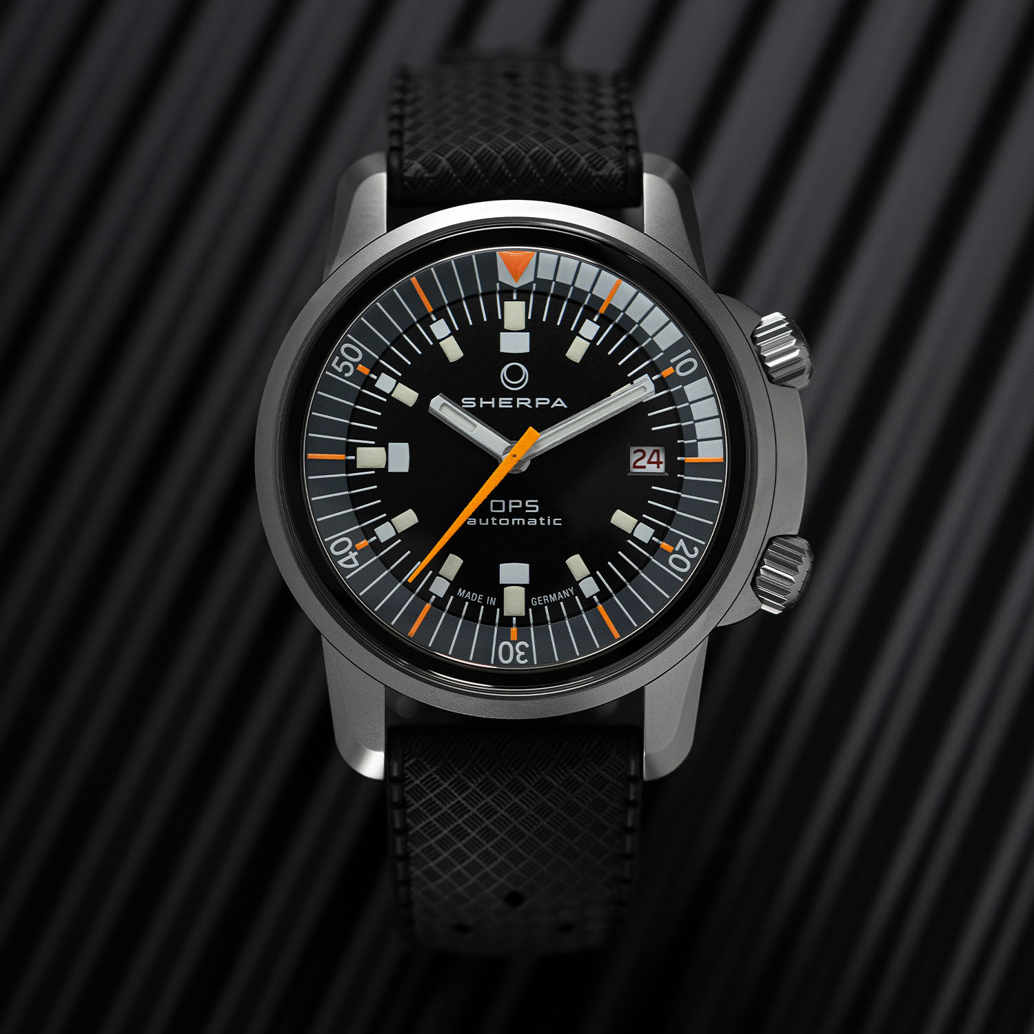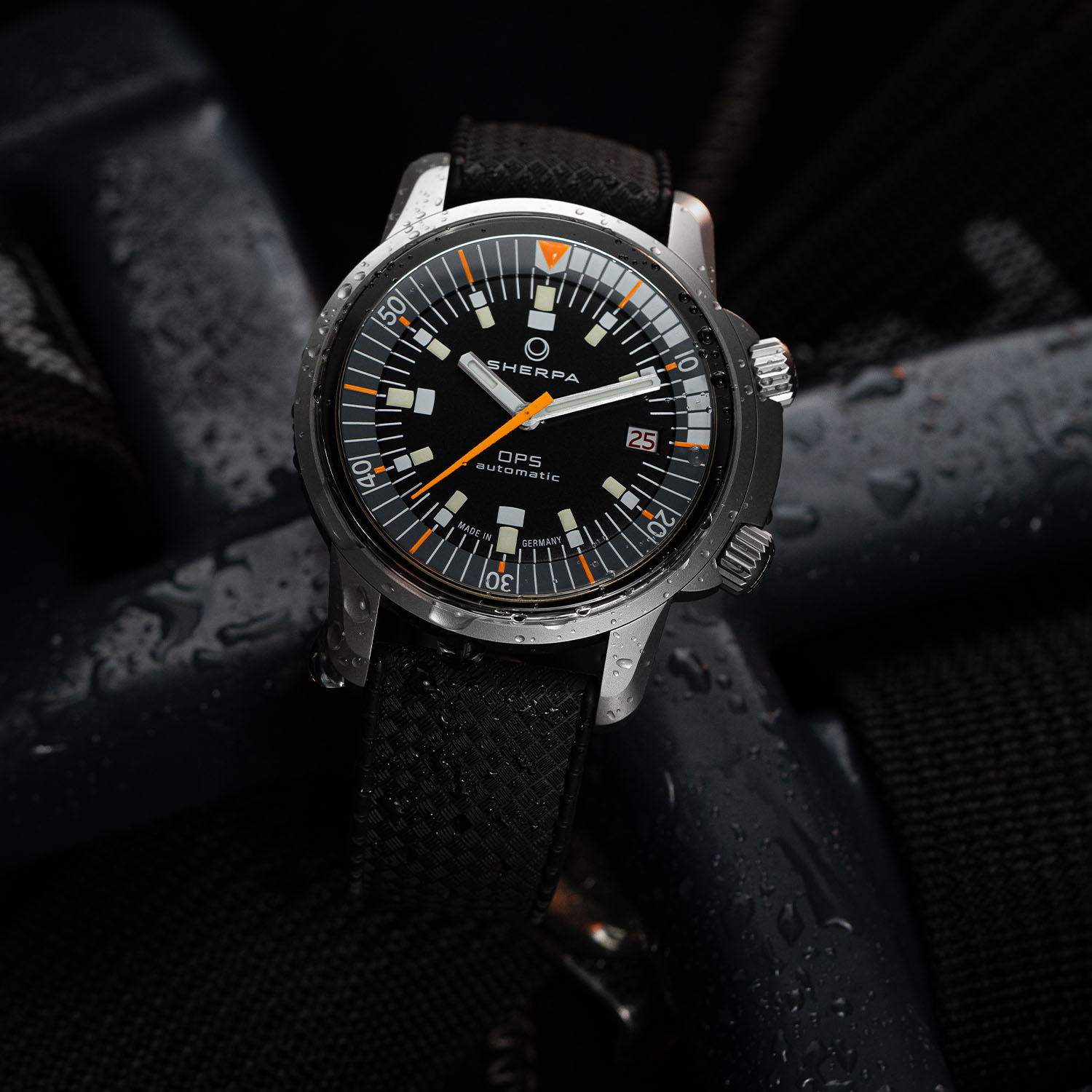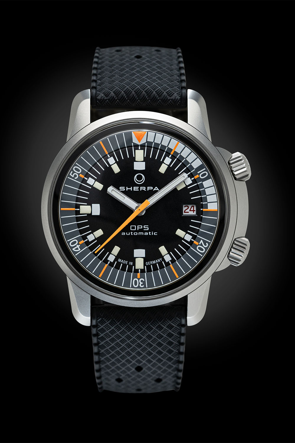 The comeback of the Sherpa was incarnated by two watches: a polished steel version named Ultradive and a black DLC-coated model named OPS. And while talking with Klocke individually, both Joseph and Nudds got the same idea: why not put the black OPS dial in a blasted steel case? And there you have the genesis of the Sherpa x TRTS OPS with a non-coated matte steel case…