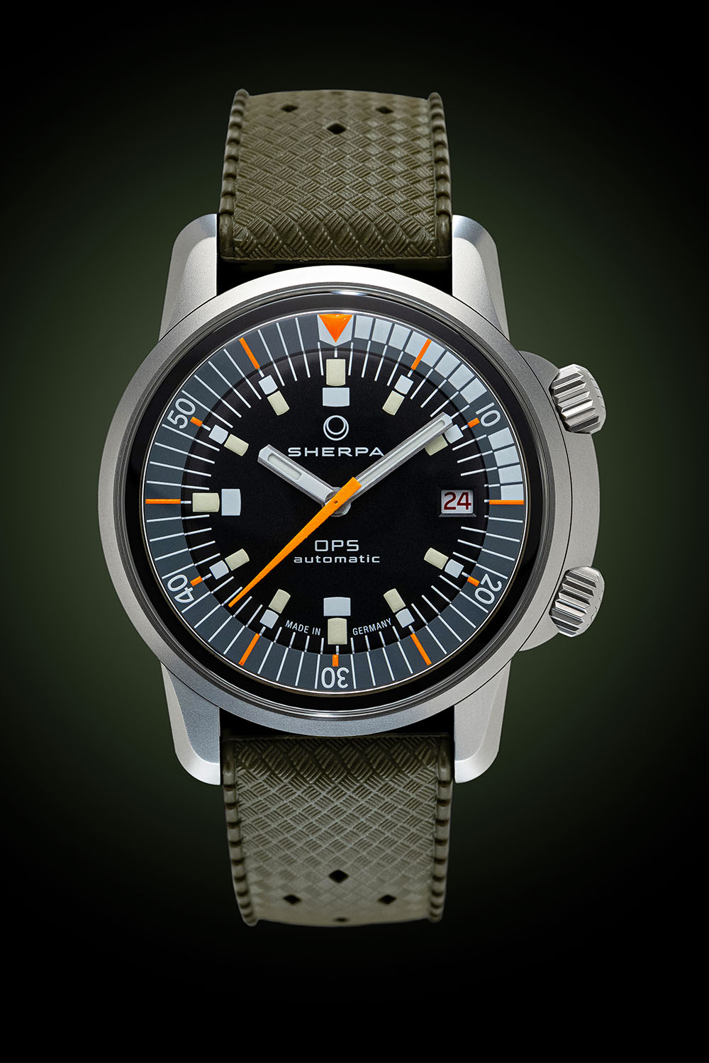 Let’s talk about the facts. The new Sherpa watches are faithful recreations of the original Enicar Sherpa Ultradive and OPS watches. The strategy isn’t limited to a design statement but goes as far as reintroducing a compressor case construction, something rarely seen in modern watchmaking. It incorporates the EPSA-STOP bayonet compressor system, which was also used by the Enicar Sherpa back in the day. As water pressure builds up, the cases and seals are compressed (hence the name), resulting in a tighter fit and a higher water resistance. And surprisingly, despite the ISO-certified 200m water-resistance, the Sherpa OPS doesn’t have screw-down crowns – to be precise, it relies on proprietary MONOFLEX crowns, another bit of technology carried over from the original Sherpa. Classically, the one at 2 o’clock operates the inner bezel, and the lower one operates the movement.
