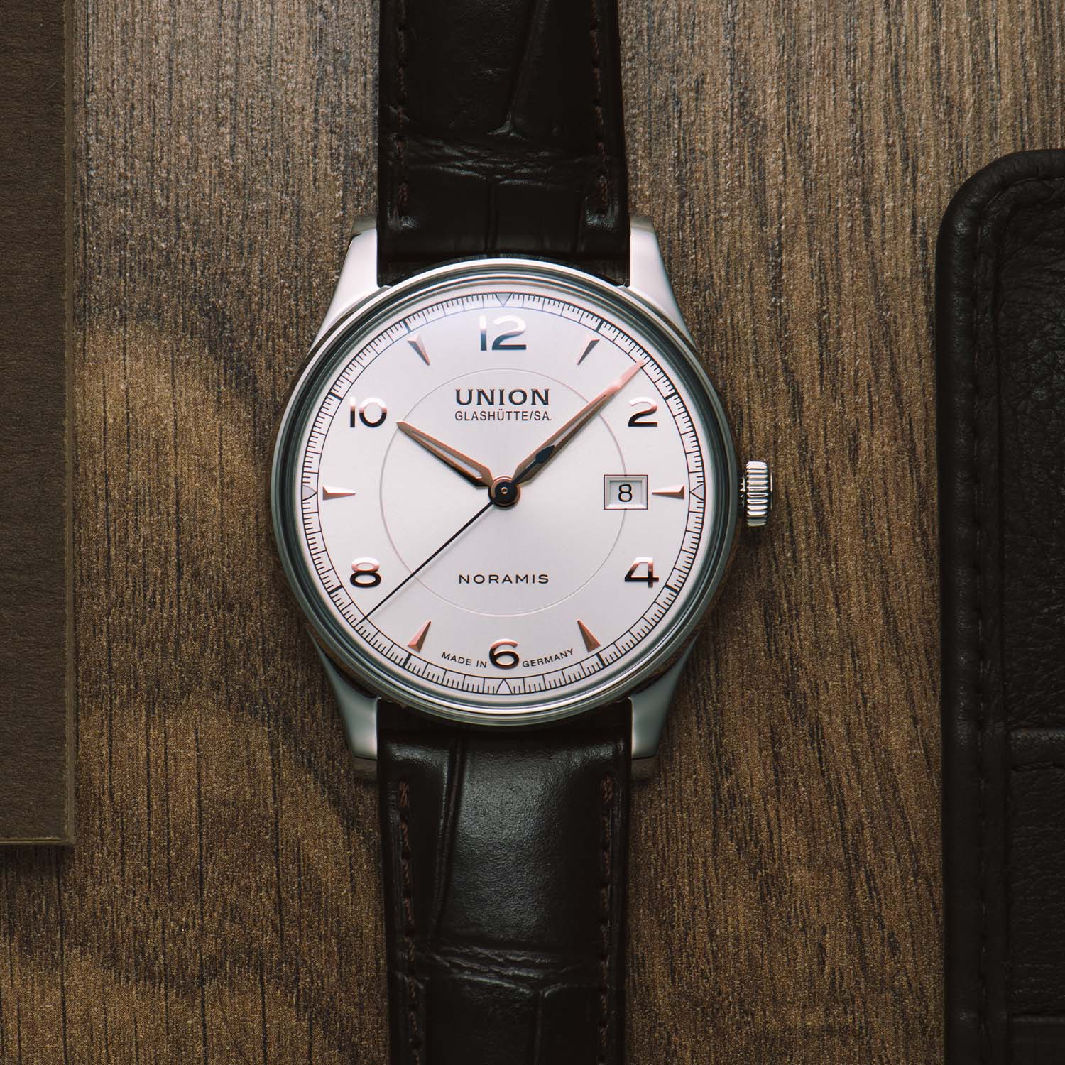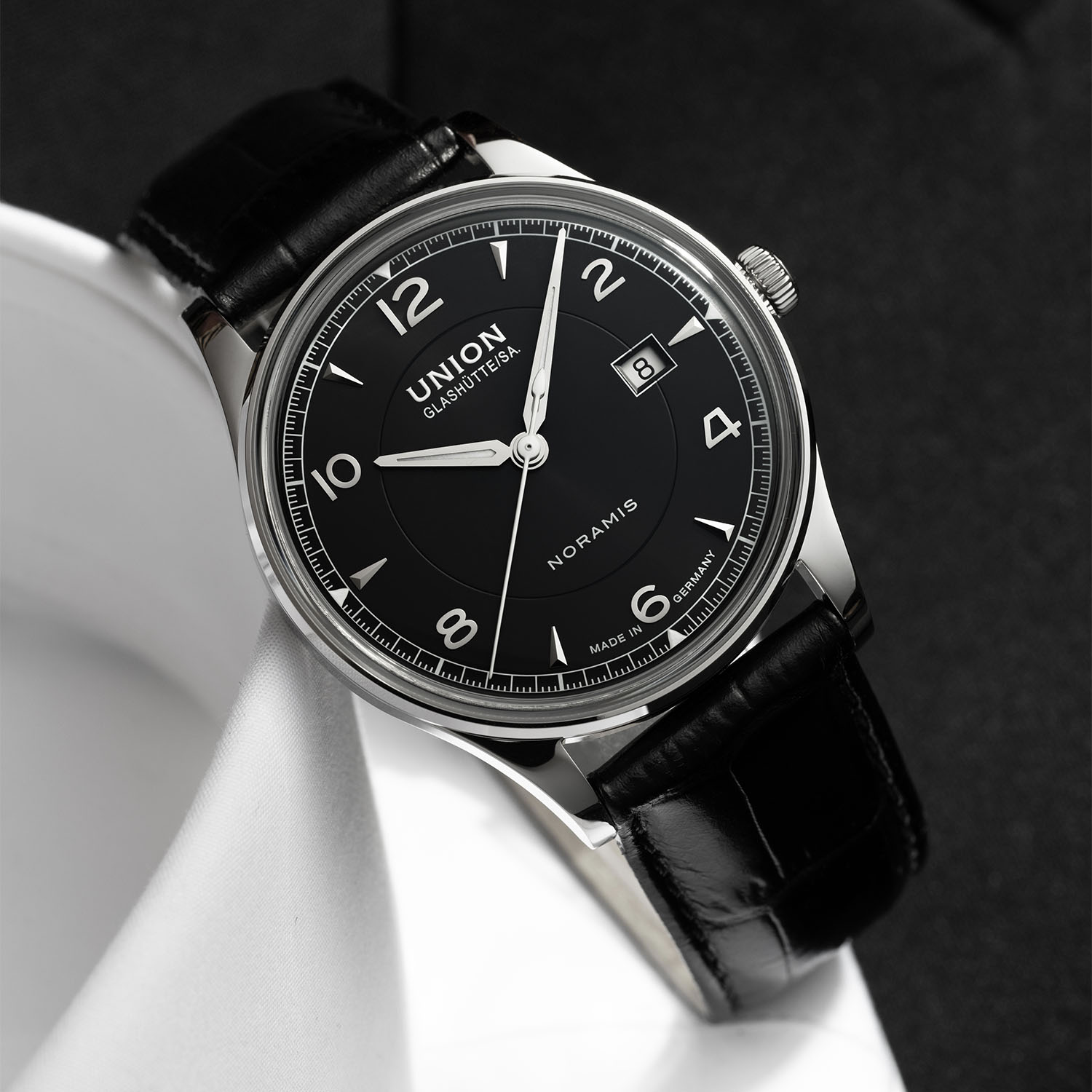 German watchmaker Union Glashütte aptly labels its Noramis collection as “charming classics”, a description that is hard to dispute. The collection offers an array of chronographs and sporty and car-racing-inspired timepieces, yet the Noramis Date stands out as the most quintessentially classic in the lineup. Despite a range of special editions boasting themed dials and a collection of watches with 1970s-inspired colours unveiled last year, Union’s catalogue was notably absent, until recently, of Noramis Date references featuring dials in the simple yet classic hues of silvery white and black. With these new Noramis Date watches, the collection gets a pair of genuine dress timepieces.