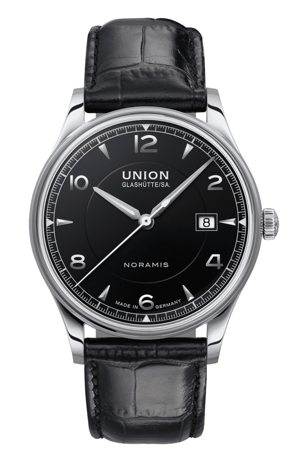 Presented on a black or brown calf leather strap with crocodile embossing, secured by a double-fold fastener with twin push buttons, the new Union Glashütte Noramis Date models offer both style and functionality and are priced at EUR 2,400.