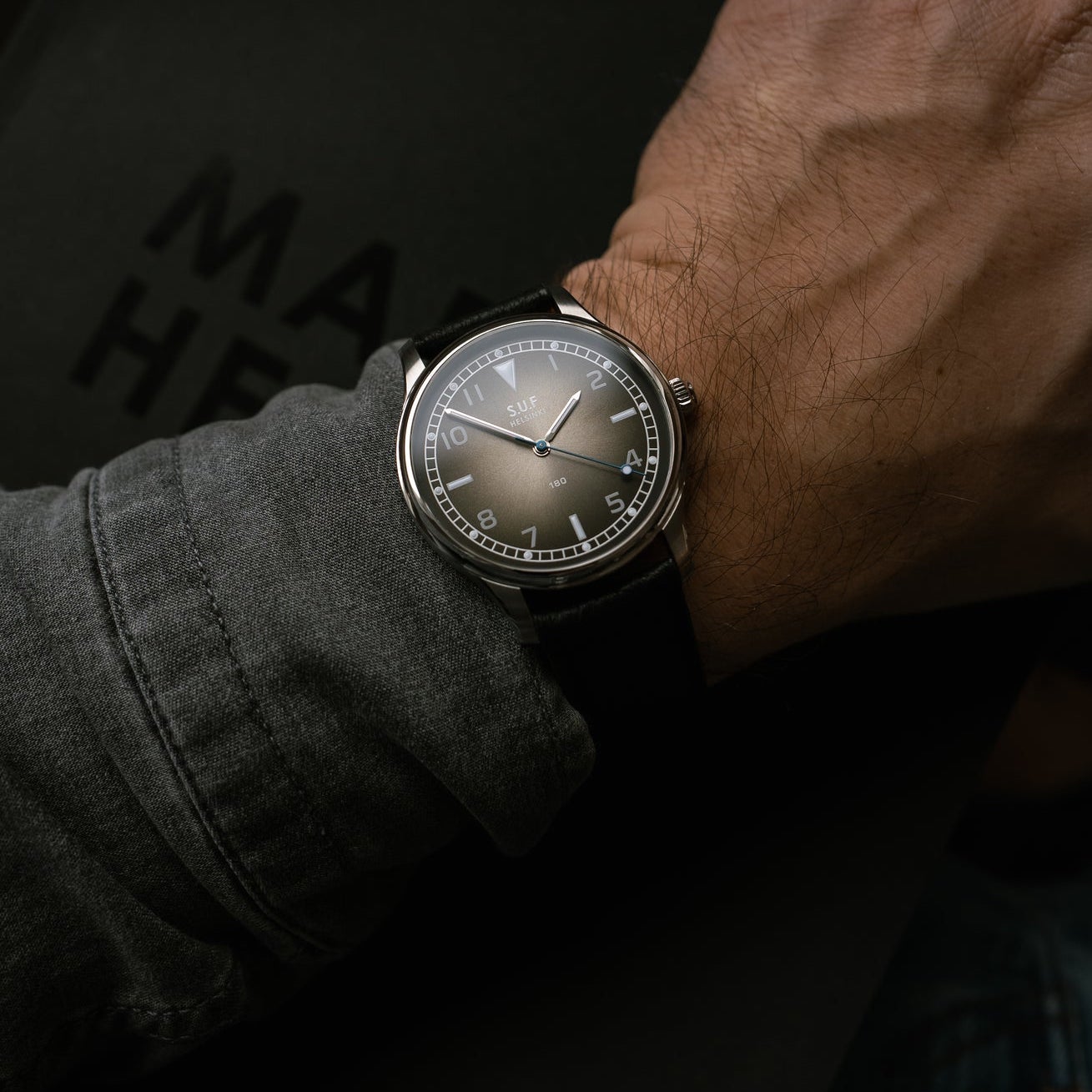 The SUF180 is a perfect one watch solution. I wear my M180 daily on Erika’s strap and dress it up with the black elk strap for the evening.