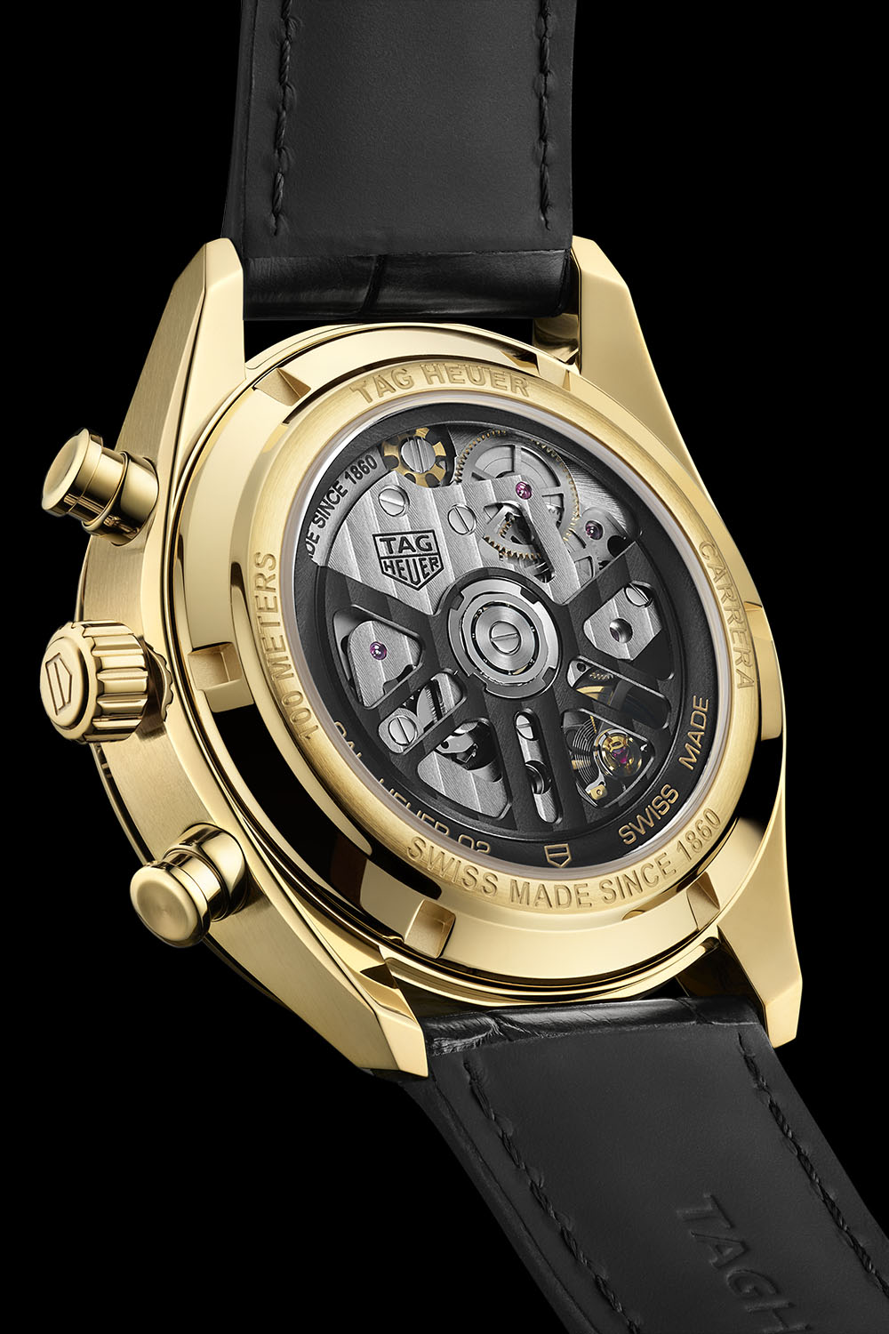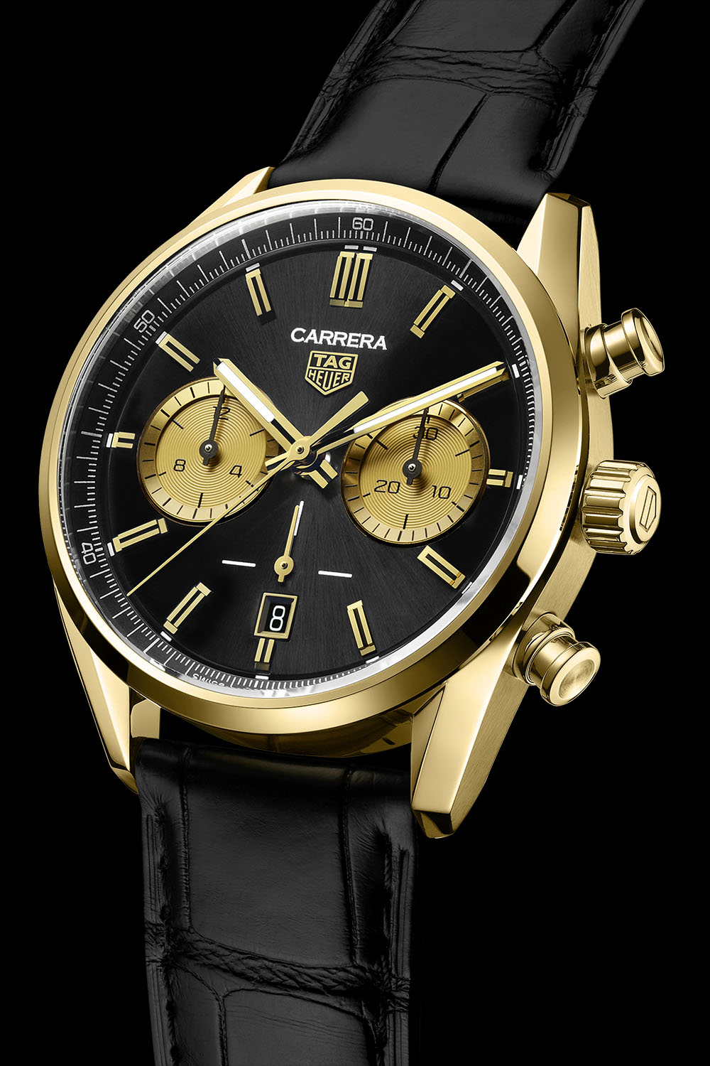 Presented on a black alligator leather strap with large scales and a gold pin buckle, this sleek version of the TAG Heuer Carrera Chronograph will be available from 17 November at TAG Heuer boutiques, on the brand’s e-commerce sites and selected retail partners for EUR19,400 / CHF 20,000 / USD 20,500. For more information, please consult www.tagheuer.com.