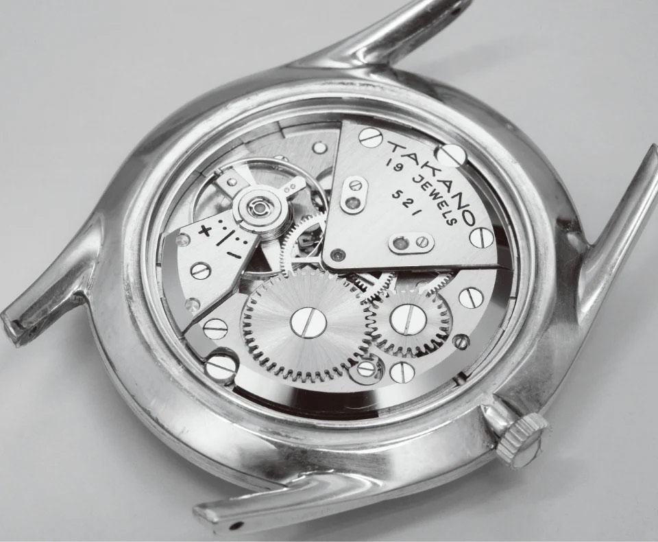 Founded by Takano Kotaro in Nagoya in 1899, Takano Clock Manufacturing started as a maker of clocks and a few years later, in 1913, a second company was founded, Takano Metal Manufacturing (or Takano Kinzokuhin Seisakusho), to produce metal table clocks. Following the death of the founder, companies were merged and started the production of instruments for military purposes. It’s only in 1957 that the Takano brand came to start the production of wristwatches. These watches were not yet powered by in-house movements made in Japan, but by outsourced calibres by Durowe, Germany – owner of the watch brand Laco. Takano also built a joint venture with American company Hamilton, to produce its watches under licence for the Japanese market.