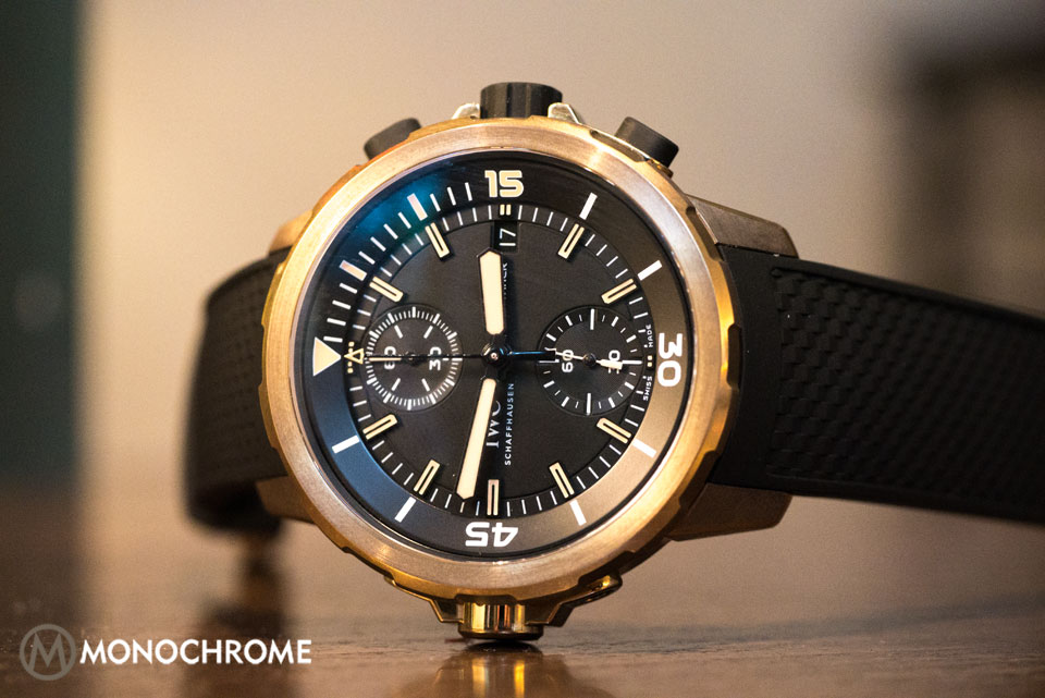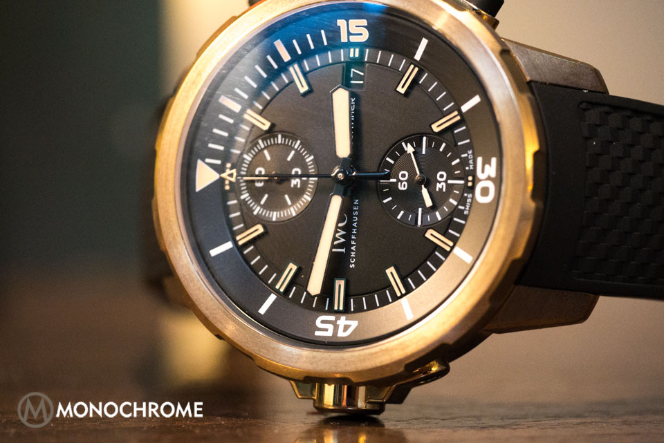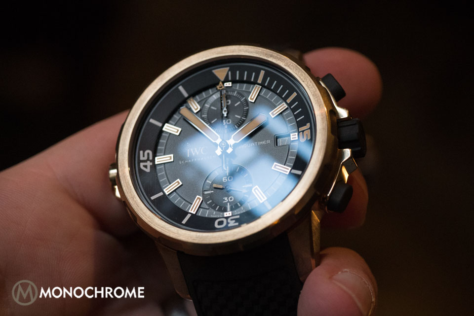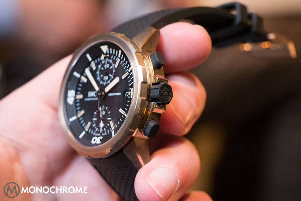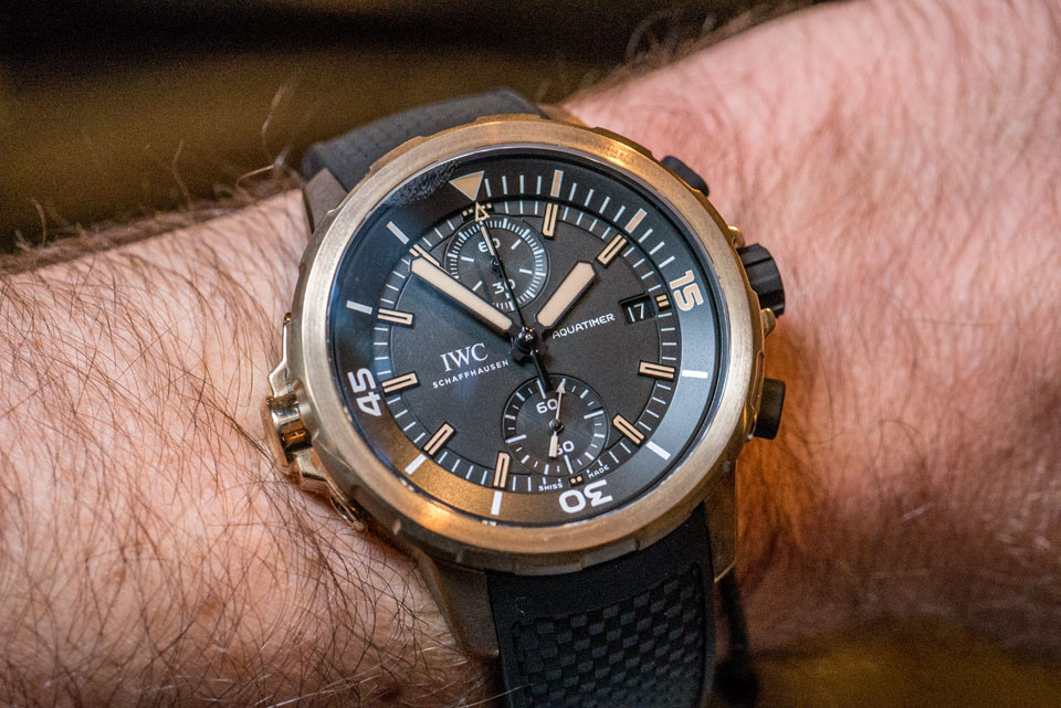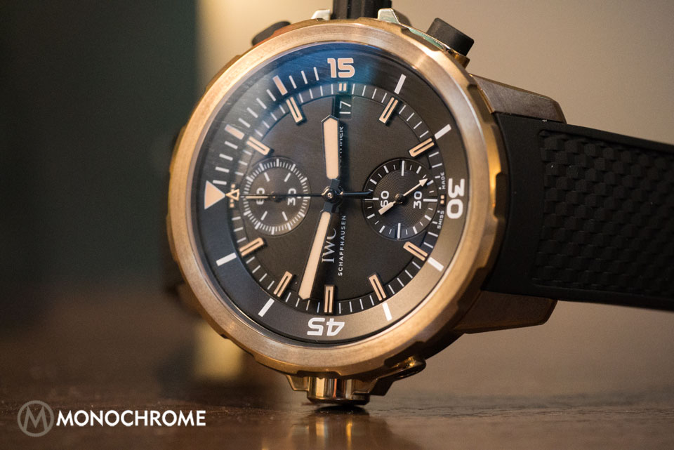And now on to our favorite… (drum roll)… the Aquatimer Chronograph Edition “Expedition Charles Darwin” (Ref. IW379503). A 43mm large bronze chronograph with IWC’s in-house caliber 89365 that can be taken down to a depth of 300 meters. The material is a special bronze alloy that extra strong, is anti-allergic and does not deform.