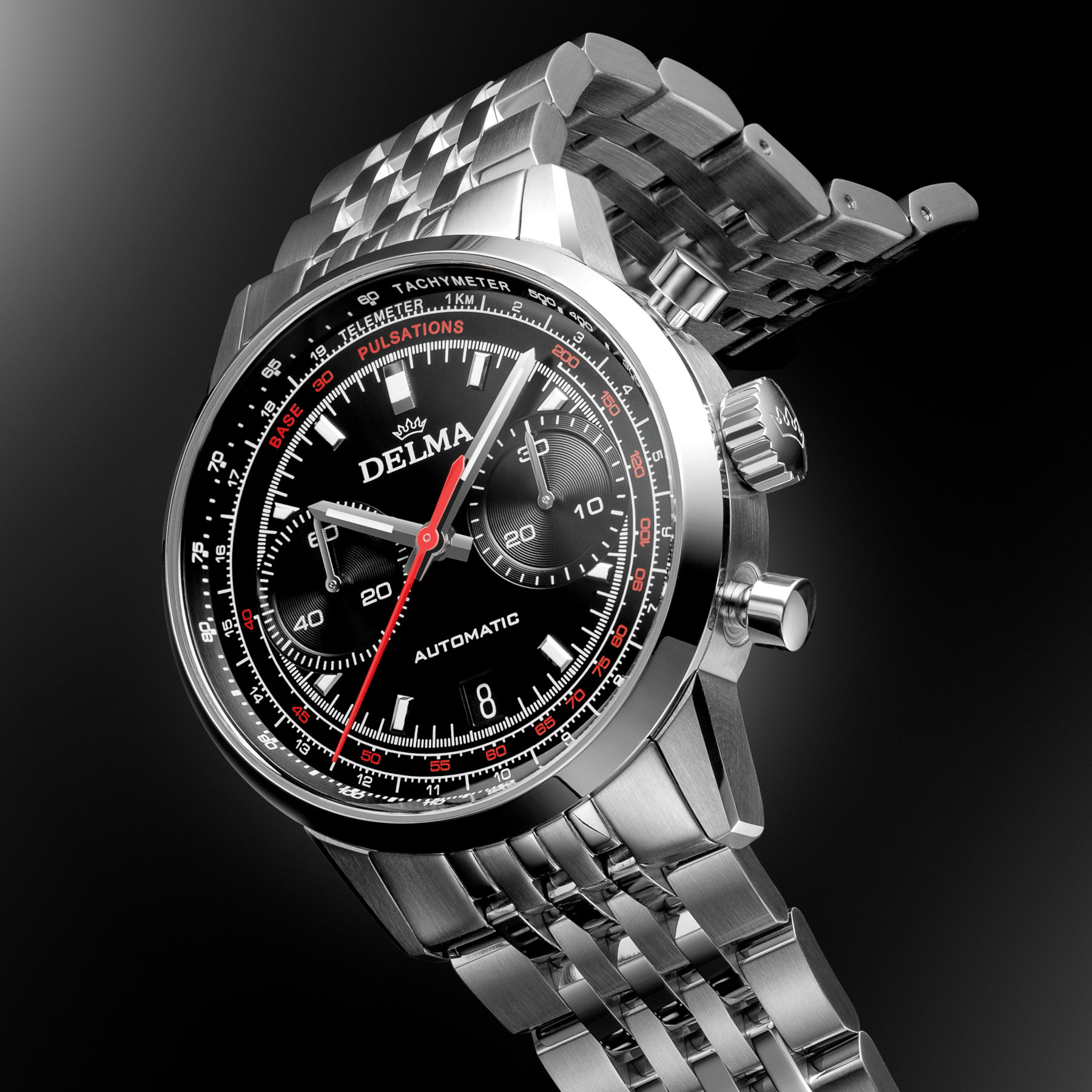 With a focus on high-performance sports watches, Delma produced its first chronograph in 1946. Coinciding with the rise of modern motorsports, the chronograph evolved to include a tachymeter scale on the dial in 1954, along with bicompax models in the 1960s. The strong design codes of these 1960s models are the inspiration behind the brand’s line-up of Continental Chronographs.