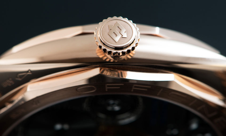 The OP XXVII caliber features a large screwed balance wheel (that means it has screws in the rim for adjusting the rate), a balance spring with Phillips curve and a swan-neck precision regulator. The movement beats at a slow pace of 18,000 vph, has 55 hours of autonomy when fully wound, and has 18 jewels to ensure smooth rotating pivots. The nickel-silver bridges are adorned with côtes de Genève striping.