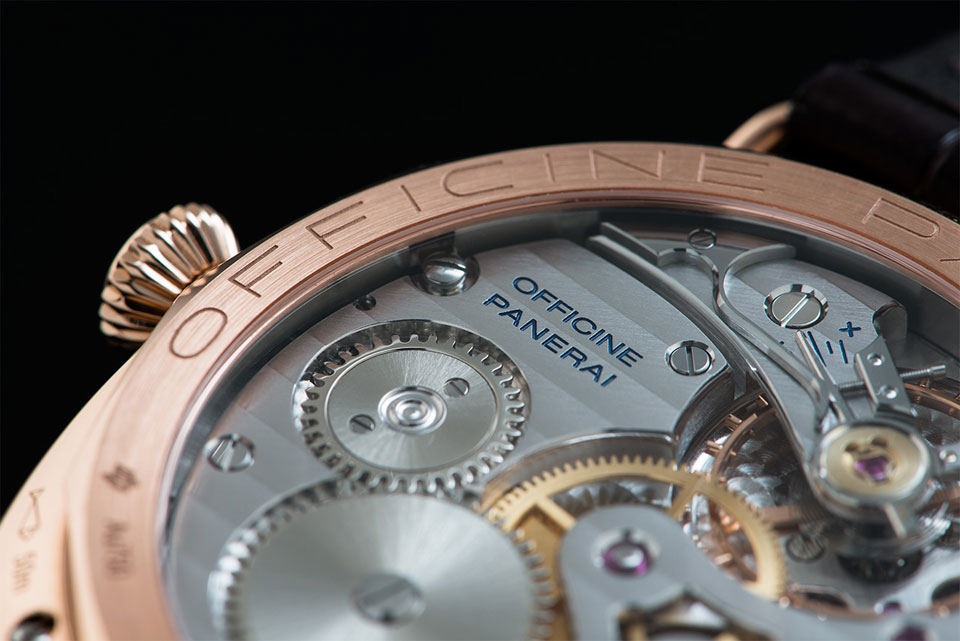 One of the features that is of particular interest, is the movement. No new in-house movement, however a gorgeous movement, built on a Minerva 16-17 base, called caliber OP XXVII. This movement was previously used in the 2012 Special Editions PAM00398 and PAM00399 (which was mistakenly distributed with a wrong engraving!)