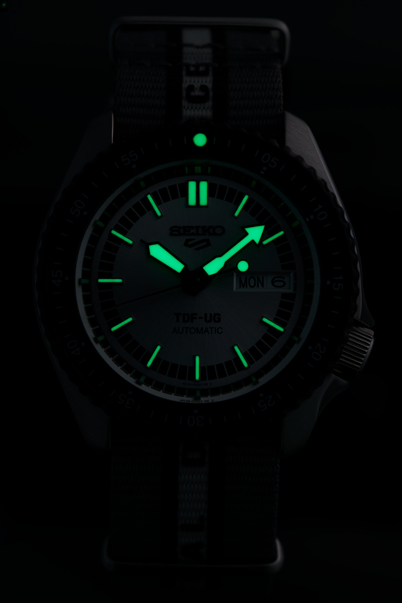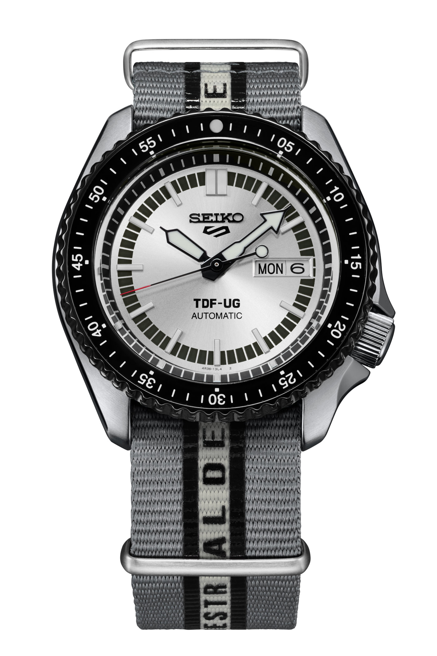 The Seiko 5 Sports 55th Anniversary Ultraseven Limited Edition SRPJ79 comes on a nylon NATO-style strap in the colours of the Ultra Guard uniforms and with the “Terrestrial Defence Force” written down the white centre line. Presented in a special edition box, it is limited to 3,400 pieces. No price is communicated as of yet, but expect it to be around the EUR 500 mark.