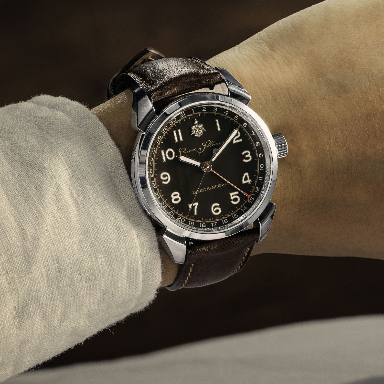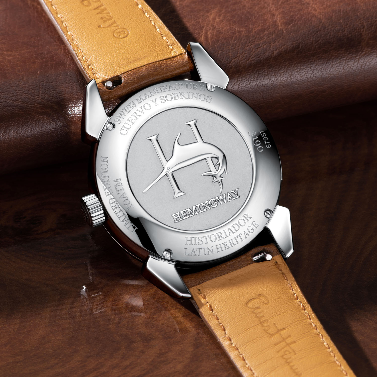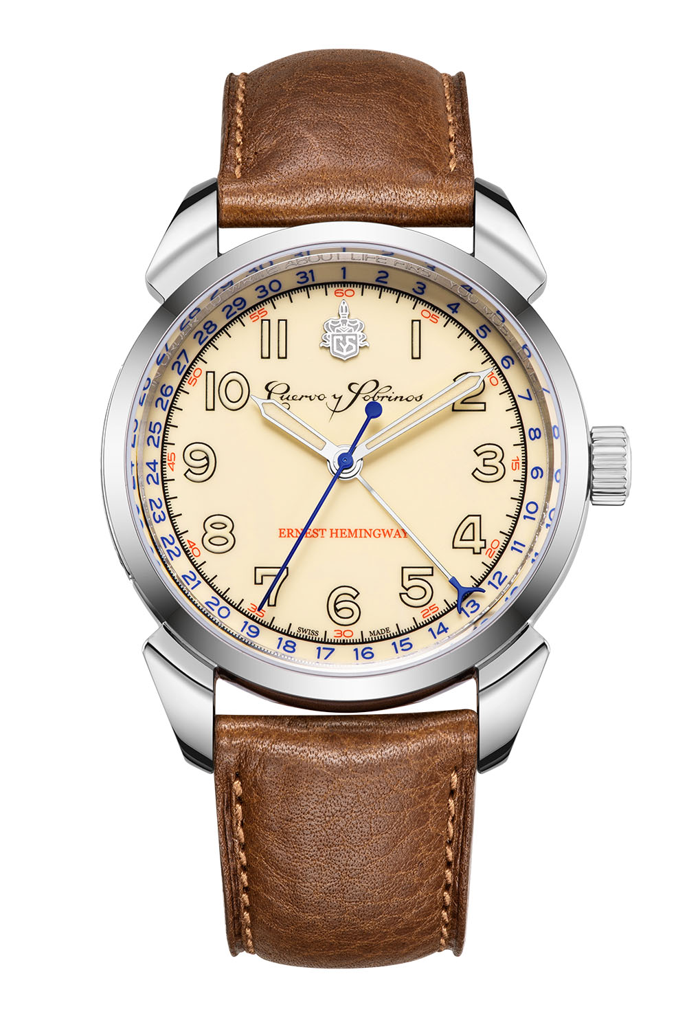 Cuervo y Sobrinos, the only Swiss watch brand with Cuban roots, celebrates Ernest Hemingway, the famous American writer who also developed a strong attachment to the Caribbean island during the last twenty years of his life. Developed in close collaboration with Hemingway Limited – the organisation overseeing Hemingway’s estate – Cuervo y Sobrinos is the first Swiss brand to have an officially licensed Hemingway watch. Three new models from the Historiador collection – two with pointer date and one GMT – join the existing 3-hand model in the Hemingway sub-collection, each with a convincing vintage flair and allusions to the legendary writer’s life. These limited-edition watches will be launched during the annual Hemingway Days event held in Key West, Florida, from 18-23 July.