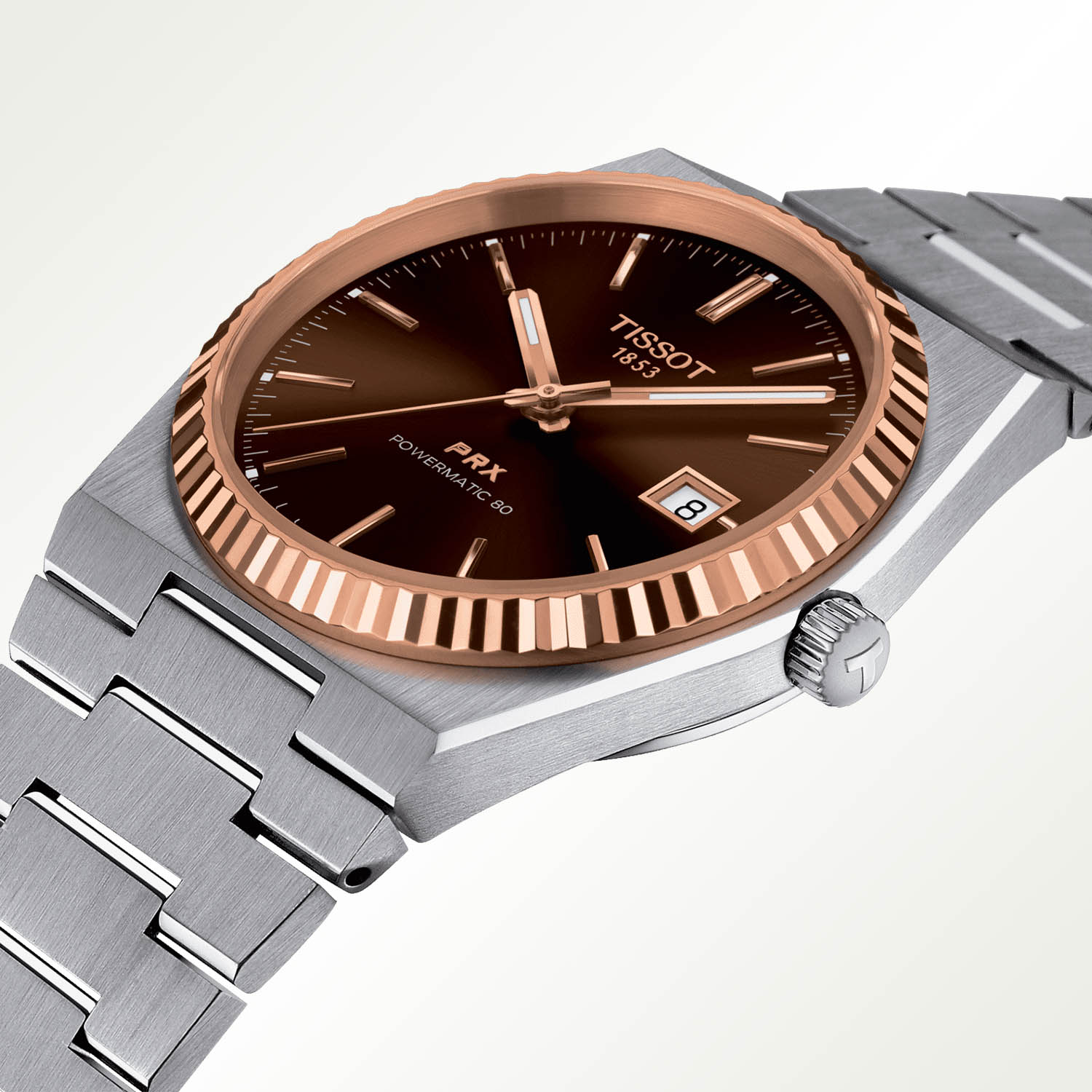 This Tissot PRX Powermatic 80 Steel & Gold (ref. T931.407.41.291.00) is worn on the same integrated steel bracelet as the classic versions. It is now available from the brand’s website and from retailers.