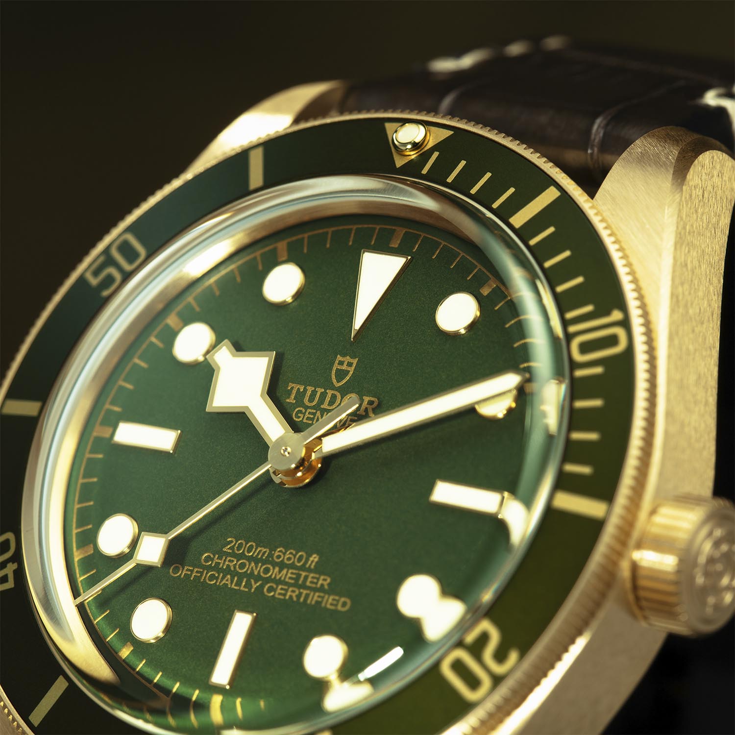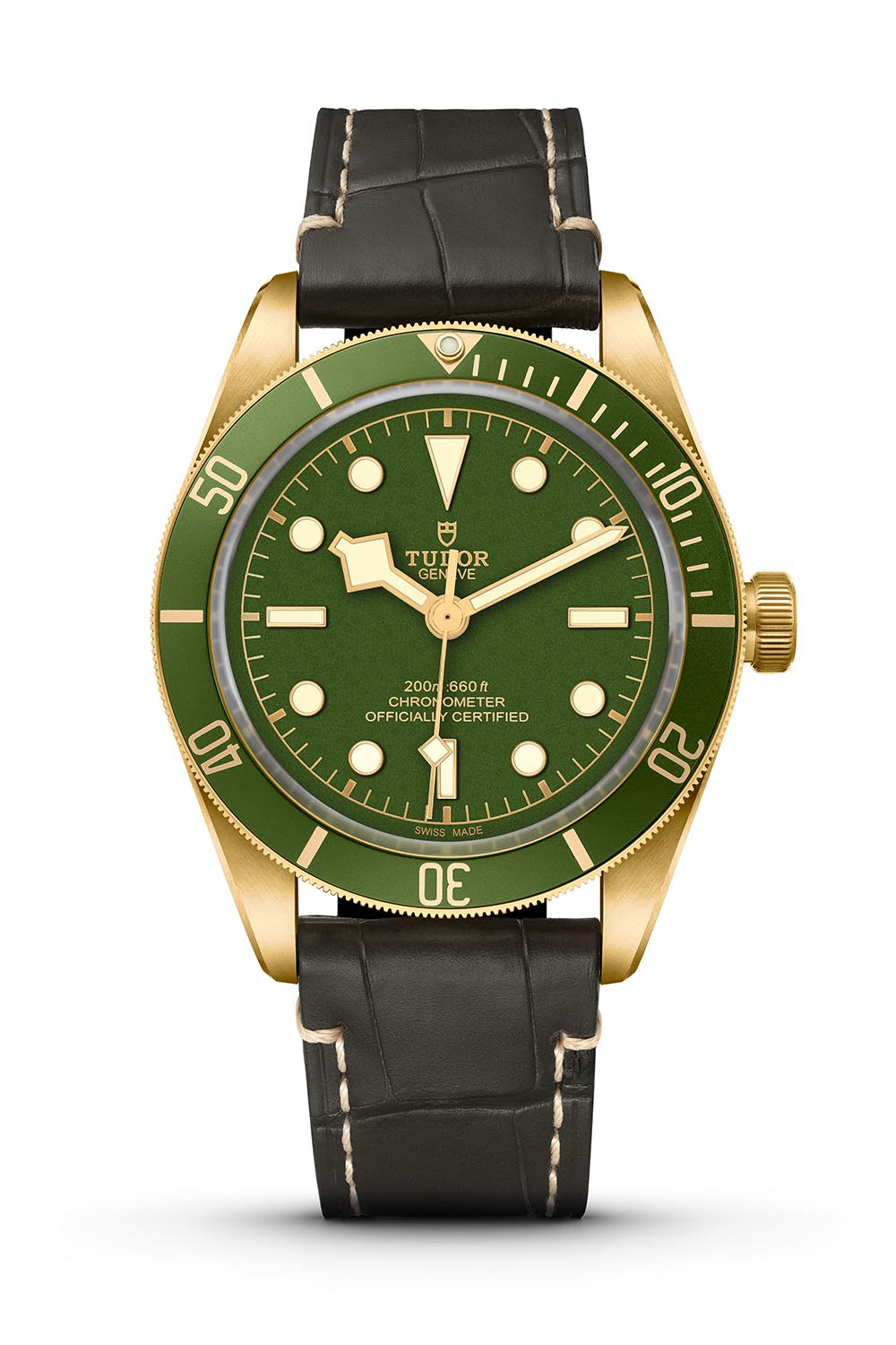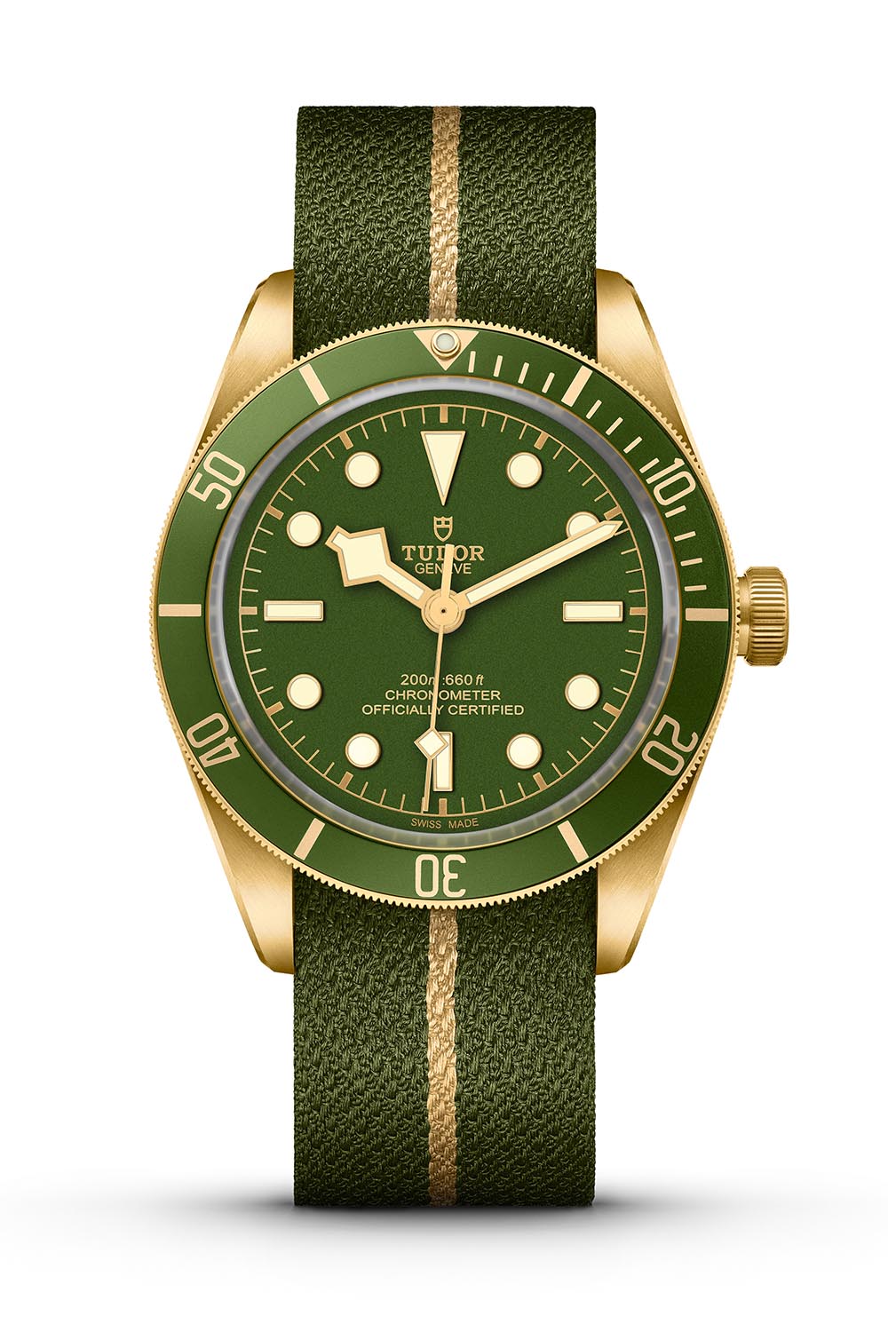 The Tudor Black Bay Fifty-Eight 79018V in 18k yellow gold with its green dial/bezel has a 5-year transferable guarantee without registration or mandatory maintenance checks. It will be priced at CHF 16,000 (incl. VAT).