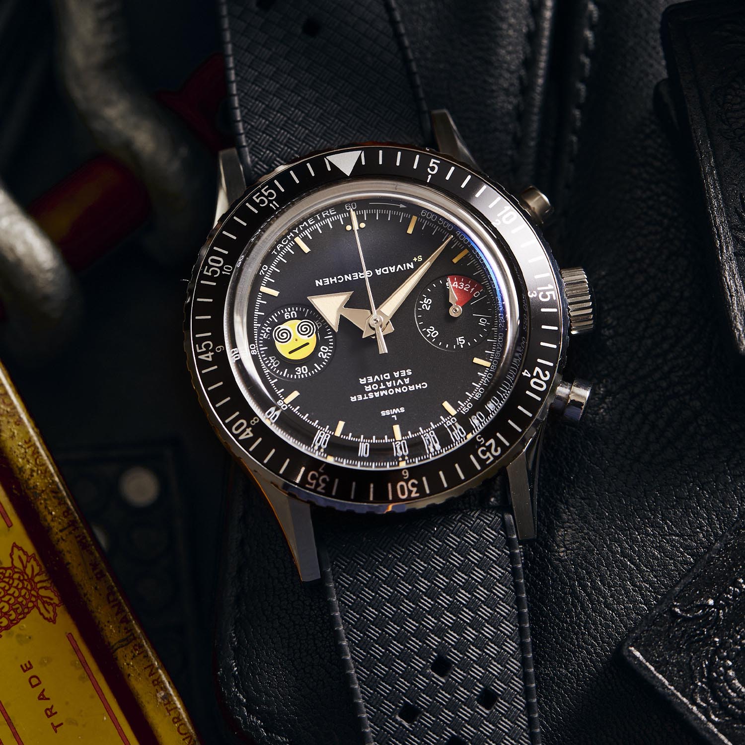 All in all, the deal is simple. Take the classic Nivada Grenchen Chronomaster Aviator Sea Diver (which we reviewed here), brainstorm for hours over an endless WhatsApp thread, and give the watch to the brilliantly weird mind of Romaric André, a.k.a Seconde/Seconde, to finalise the idea and make it a reality. Well, a rather surreal reality, if you ask me. But in a world where mechanical watches are as essential as they are absurd, there’s nothing wrong in making them even more absurd… And thus completely relevant. Yes, I know, it’s all very chaotic. But that’s the point here, isn’t it?