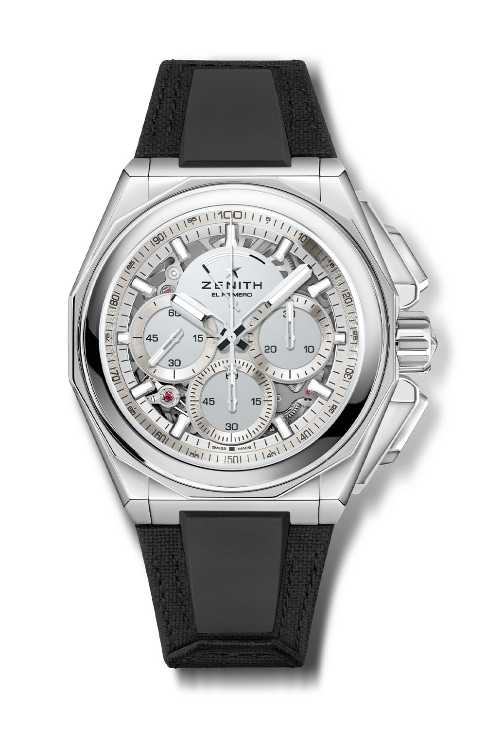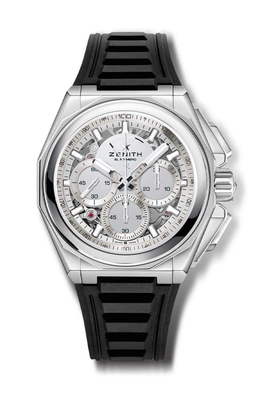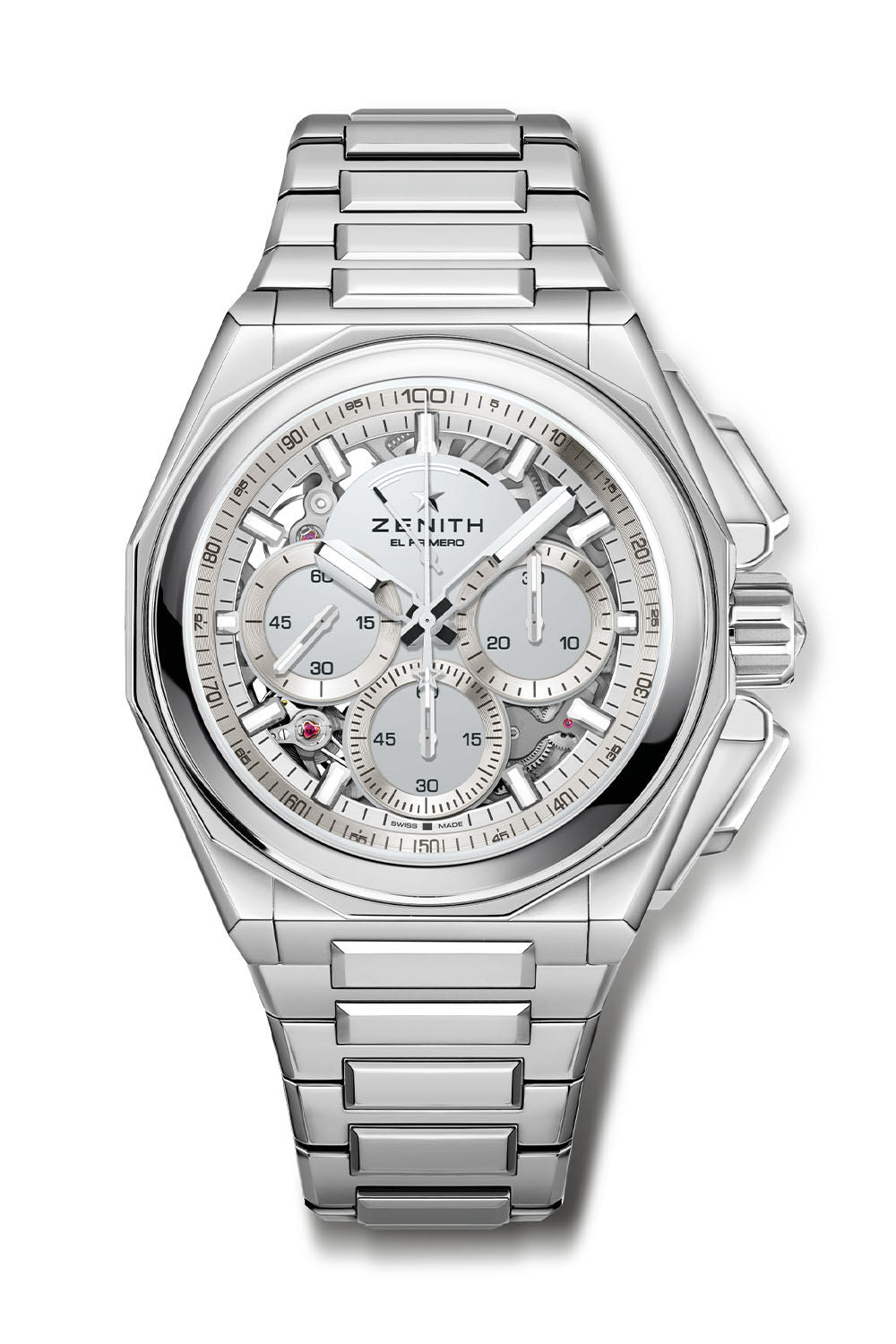 Defying detection, Zenith gives its 1/100th-of-a-second chronograph an ultimate camouflage makeover with mirror-polished surfaces from head to toe.