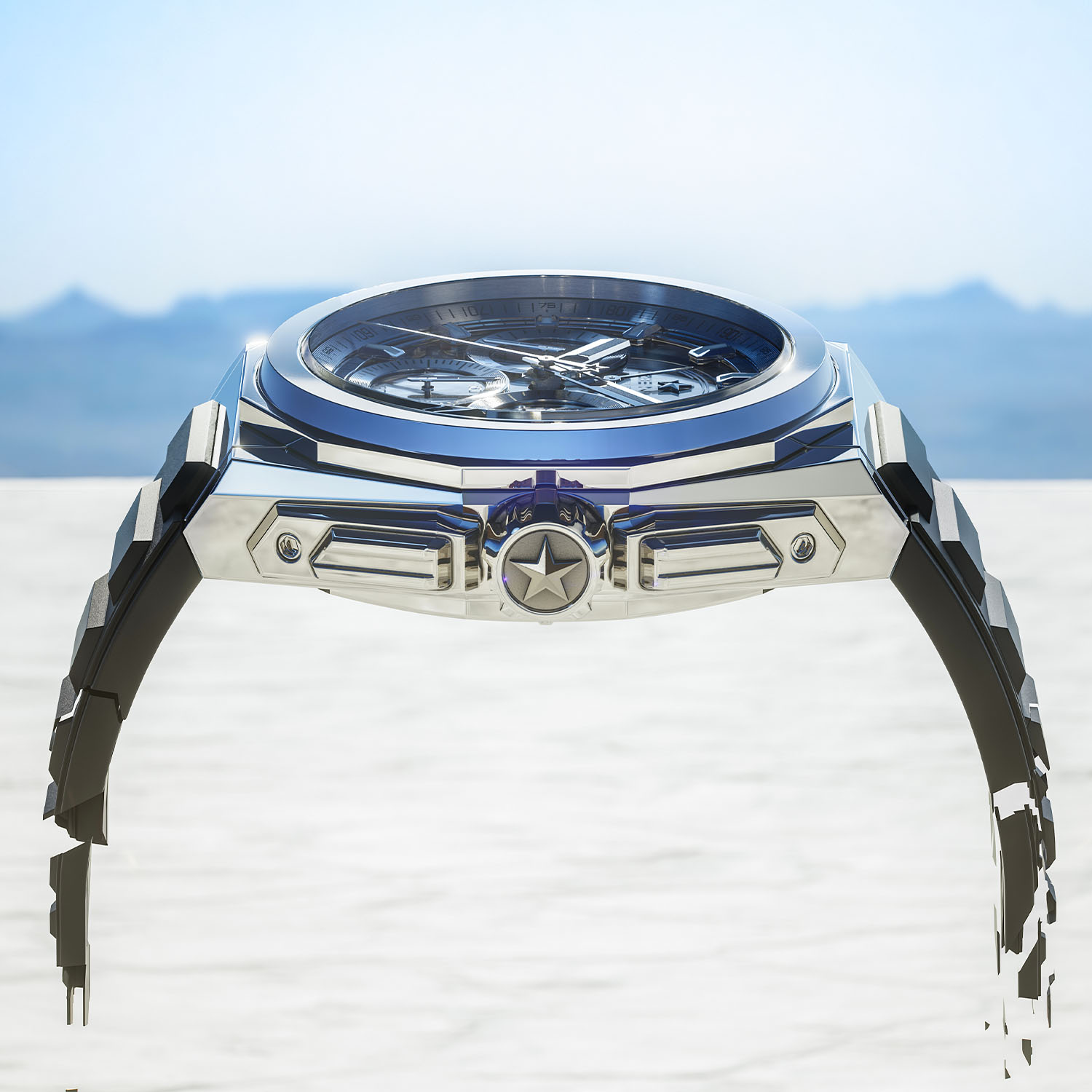 Camouflage dials have been a big hit in the past couple of years, and we’ve covered several combat-ready models. Zenith pushes the camouflage concept to the extreme, giving its Defy Extreme a radical makeover with a reflective mirrored surface. Undoubtedly the boldest take on its high-performance 1/100th-of-a-second chronograph, the latest manifestation blends into its surroundings thanks to its distortion-free mirror-polished case, dial and bracelet.