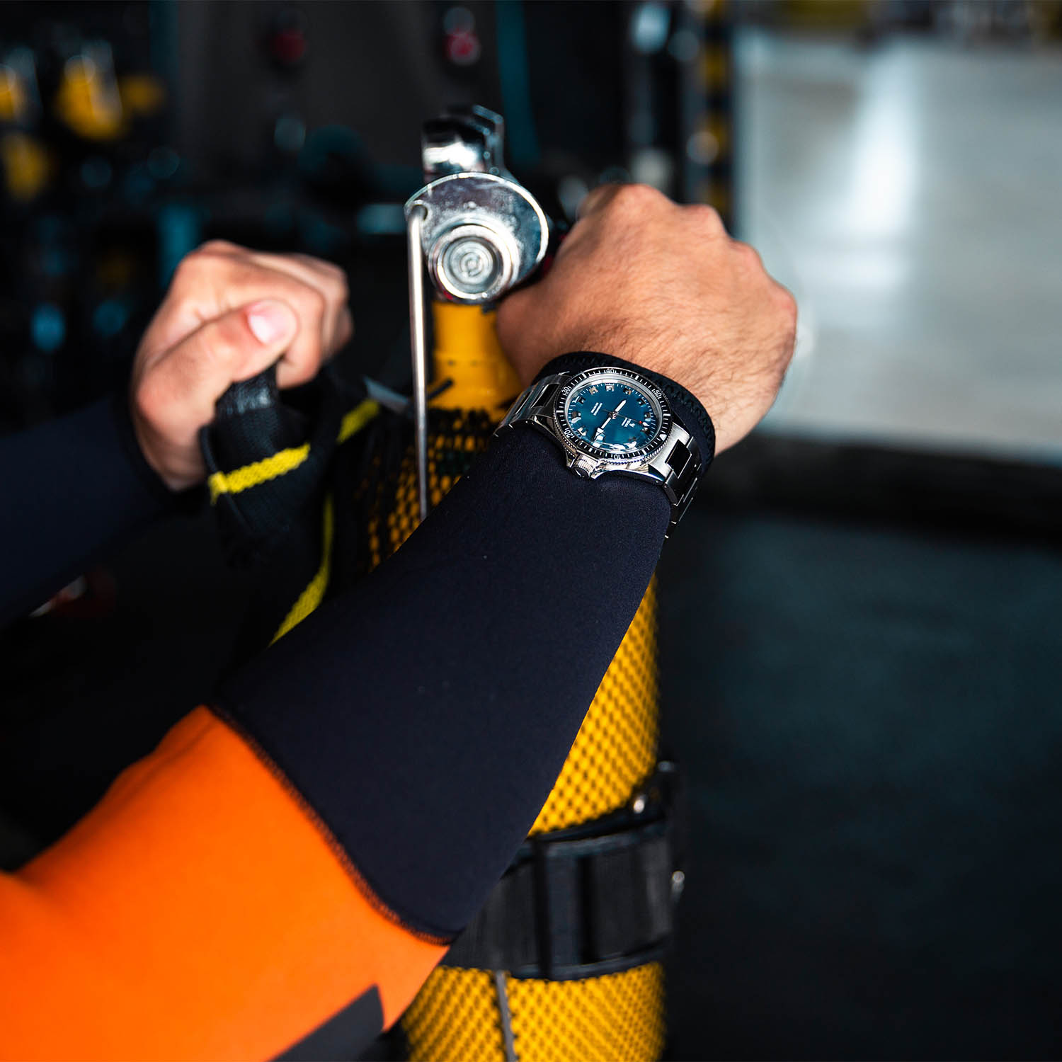 It’s the right moment now to turn on your speakers and listen to this… La Marseillaise, the national anthem of France (sorry for a bit of patriotism on this day… I’m French, I can’t help it). On this July 14th, Yema has decided to release a new watch that is directly linked to the French military forces and inspired by a vintage watch that was once issued to the Sauveteurs-Plongeurs He?liporte?s de l’arme?e de l’Air (the SPHAA, a search and rescue team of the Air Force, acting over the sea, with helicopters). At the beginning of the 1970s, this highly-trained team received as part of their equipment a Yema Superman dive watch reference 24.11.17. This evolution of the classic Superman differentiated thanks to its brushed blue dial and typical 1970s applied U-shaped markers. And it’s now back.