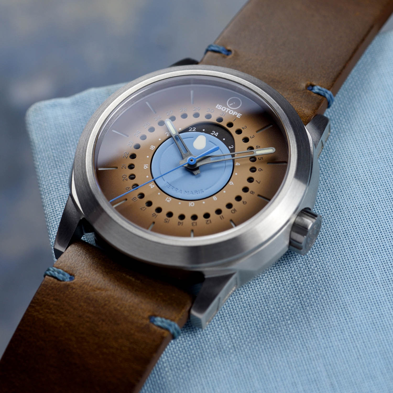 The Isotope GMT 0º Terra Maris Limited Edition is now available for orders. It is limited to 49 watches and is priced at GBP 1,030, including taxes (about EUR 1,220 or USD 1,320 at publishing time). For more details, please visit isotopewatches.com.
