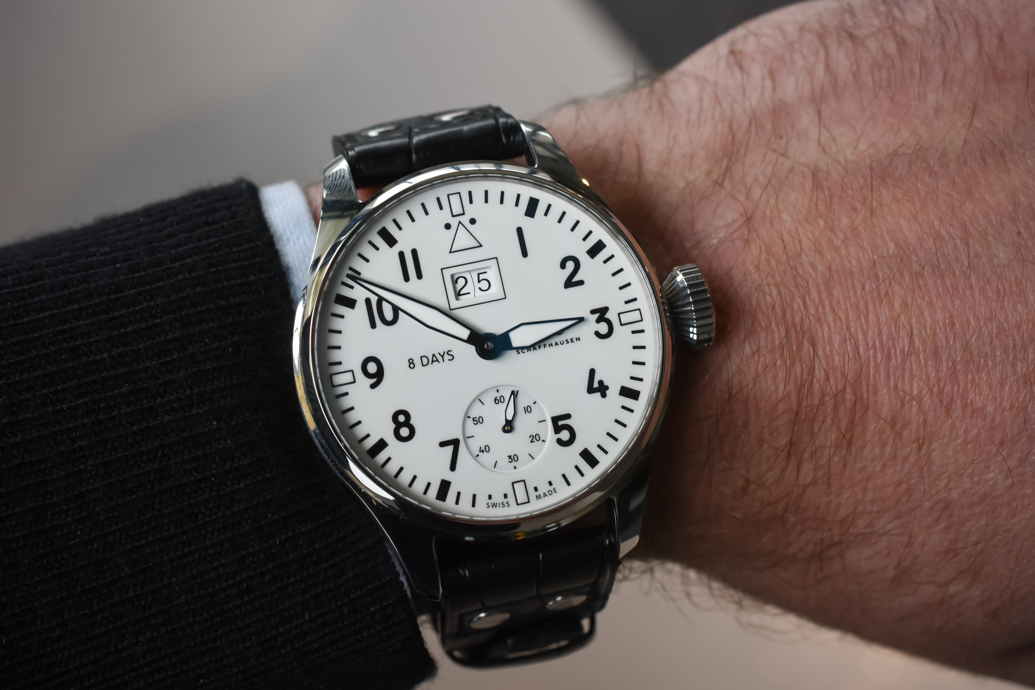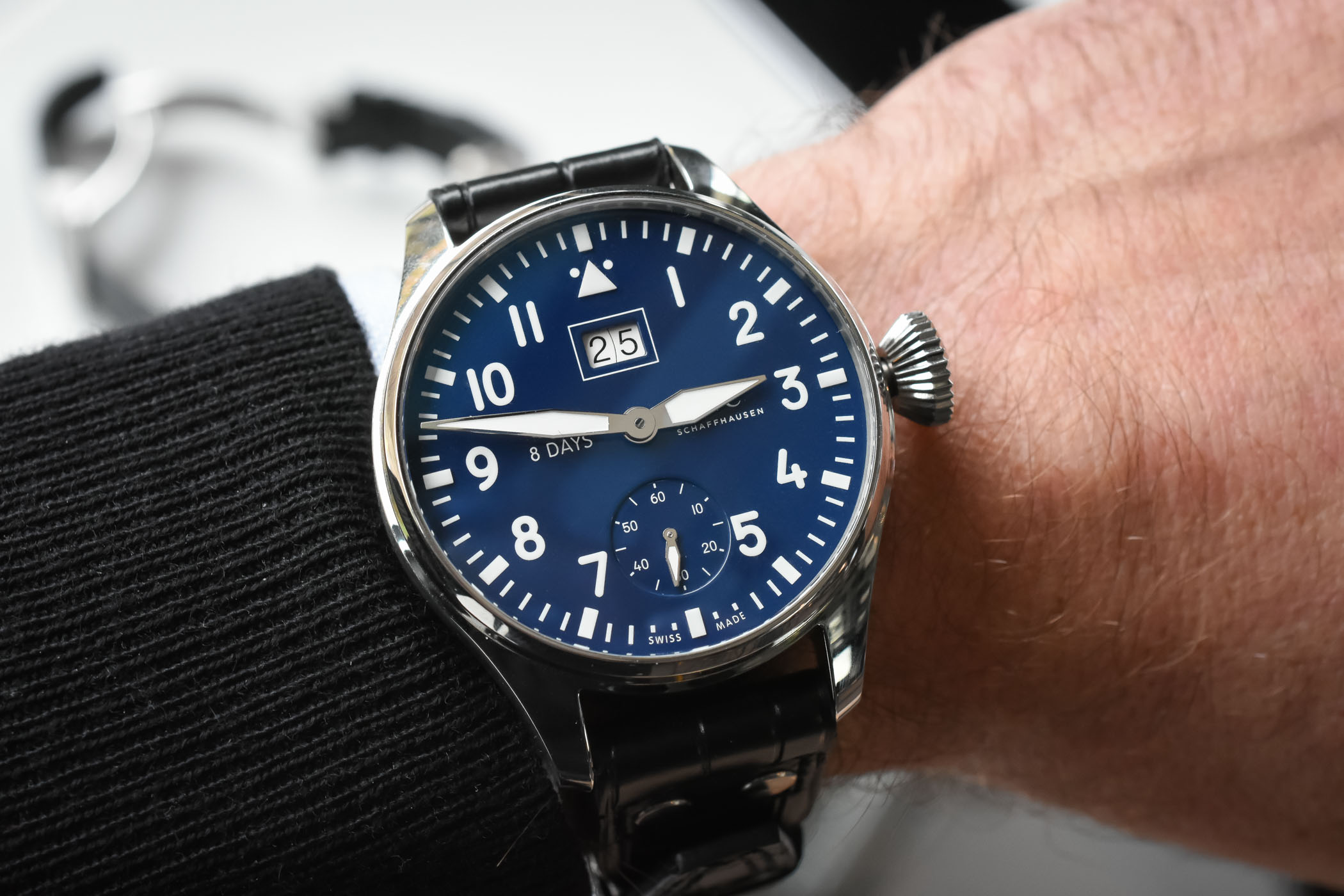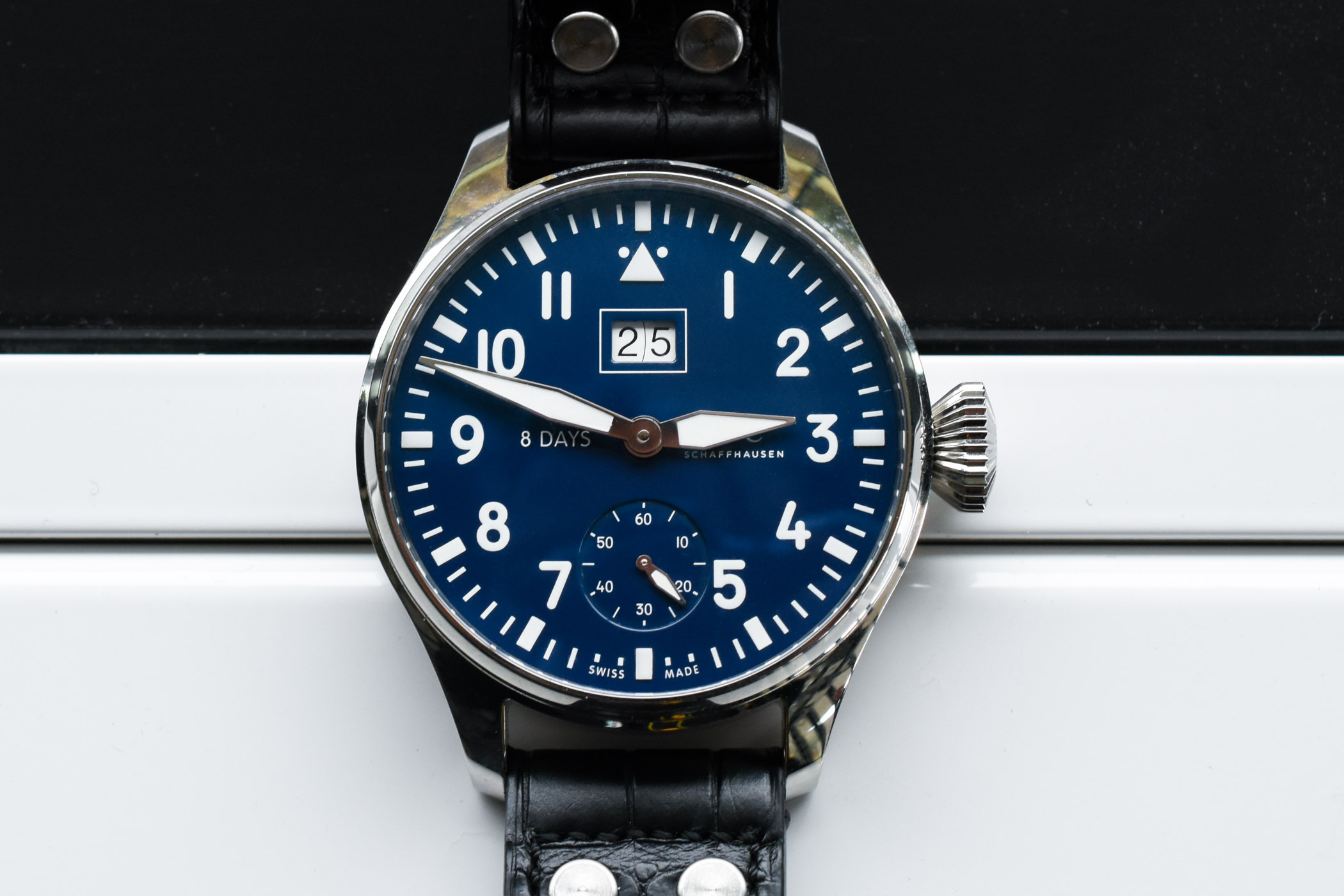Meet the first Big Pilot’s Watch from IWC with a date display featuring large numerals beneath the triangular index at 12.