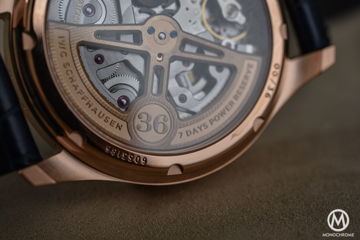 The IWC Big Pilot’s Watch Perpetual Calendar Edition “A Tribute to the 1st IWC Pilot’s Watch” has a specific rotor in red gold, with a “36” engraving, to remind of the limitation of the watch and of the date when the first IWC Pilot’s Watch has been created. It will be a limited edition of 36 pieces only, and exclusively available at the IWC Boutique in Amsterdam and selected IWC partners within the Benelux and Scandinavia. Retail price is 47,000 Euros. More details on iwc.com.