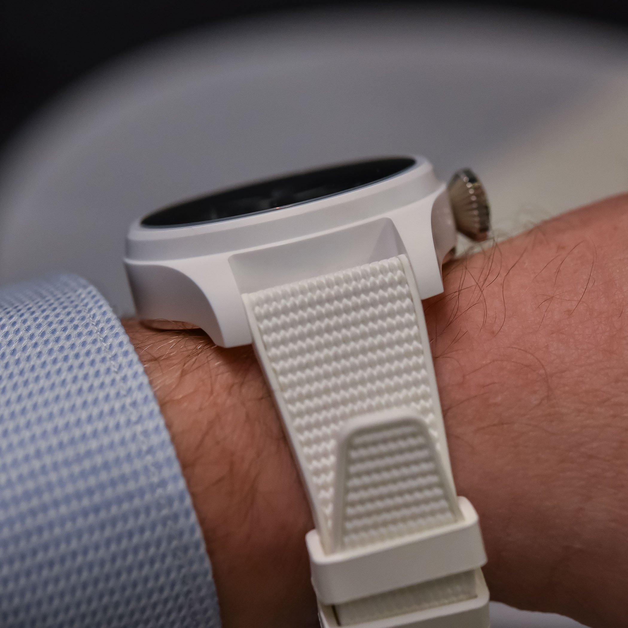 Absolutely, you nod and slip on the Top Gun Lake Tahoe, securing the 22mm wide white rubber strap with a steel folding clasp. Despite your stature, the watch appears substantial, living up to its extensive name, and the ribbed crown immediately makes its presence felt on your wrist. It’s a bit uncomfortable, akin to many glamorous yet painful women’s shoes on the red carpet. You find yourself caught in a love-hate relationship with the watch, acknowledging the discomfort while unable to resist its allure. You rationalize that the lightweight material offsets the watch’s size, and you calm yourself by thinking the earlier versions measured 55mm, forgetting they were typically worn over the flight suit. Perhaps you remember seeing images of Lewis Hamilton wearing one, and he is not a Hulk, so for you, it should work, too.