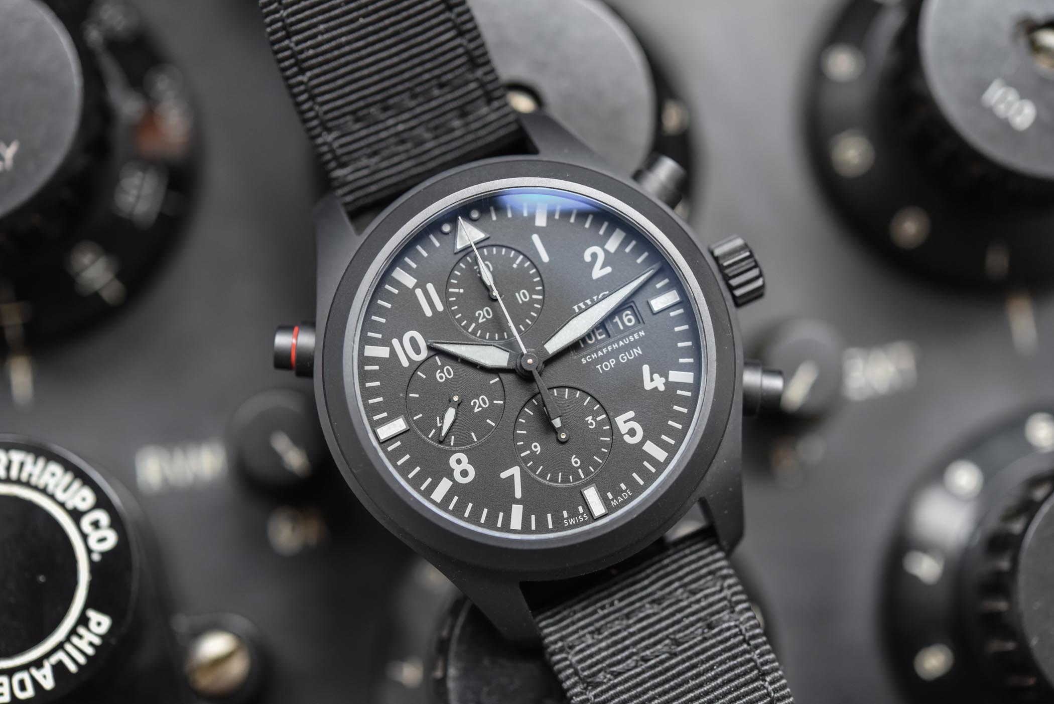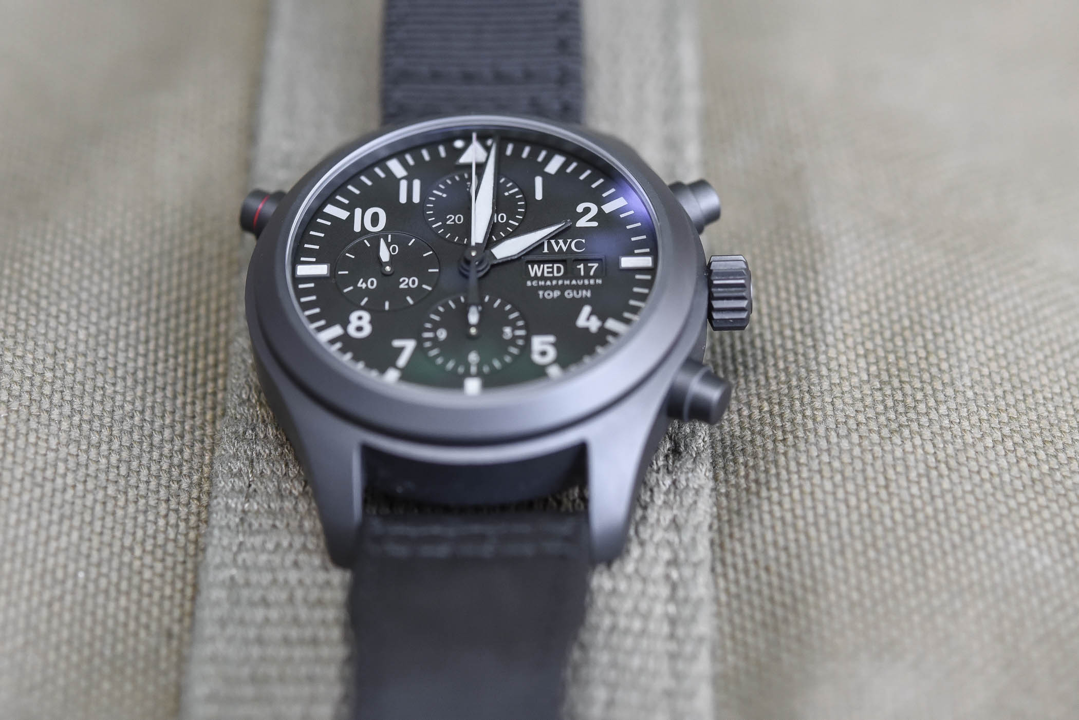 Besides being one hell of a good looking pilot’s watch with the coolest complication/movement you’ll probably find at IWC, this new Double Chronograph TOP GUN also marks the comeback of two iconic features of the brand. It has to do with the ceramic pilot’s watch first, and second with the movement that ticks inside.