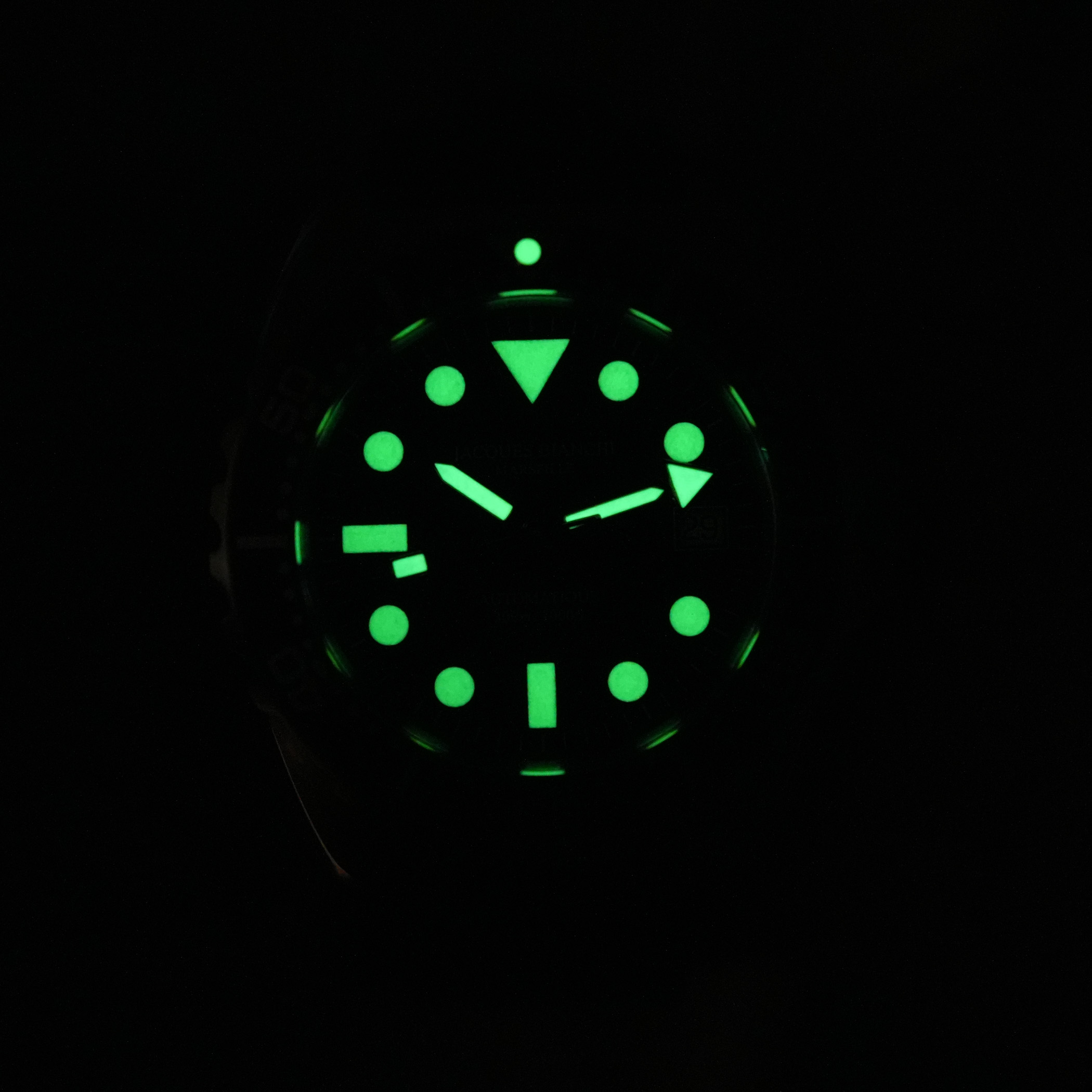 The 60-click rotating bezel is faithful to the original, with very prominent teeth for a secure grip with gloves and a black aluminium insert. It has a detailed 60-minute scale and a lumed pearl at 12 o’clock. Rotating action lacks the refinement of more expensive examples, but it certainly gets the job (well) done for the price, and the highly audible click has its own instrument-like charm.