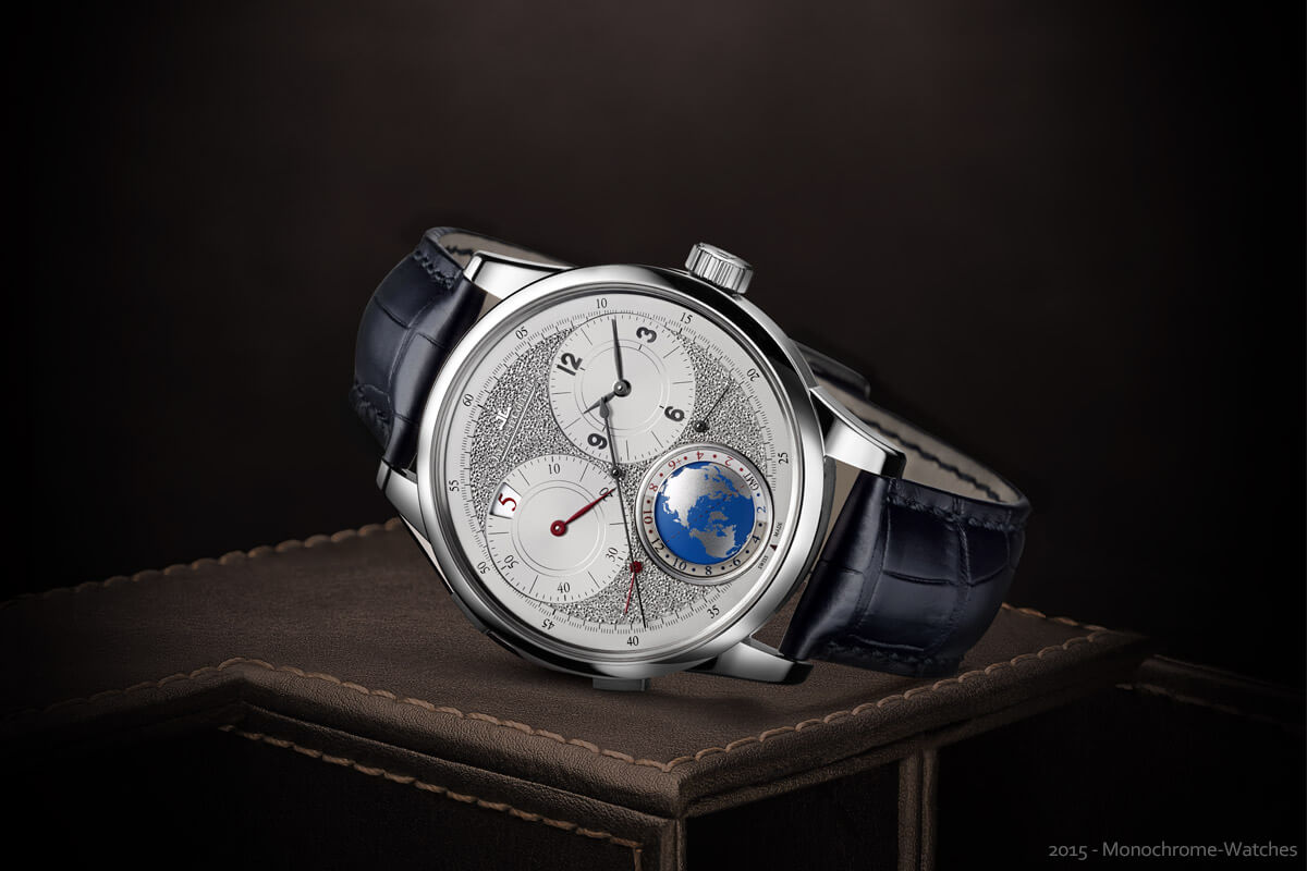 Let’s first talk functions. Most worldtimers are built to indicate the time in 24 different timezones around the world, however some nations felt the urge to create additional timezones with 15min, 30min or 45min deviations. Kind of problematic for the watchmaking industry, right. Some (a few) watches however came with a solution, like for instance the recently revealed Glashutte Original Senator Cosmopolite or the Vacheron-Constantin Patrimony World Time, two watches that indicate the 37 time zones that our world comprises. Jaeger-LeCoultre also has its own answer to this issue, with a watch that has the ability to be adjusted to-the-minute, independently from the rest of the timekeeping indications.