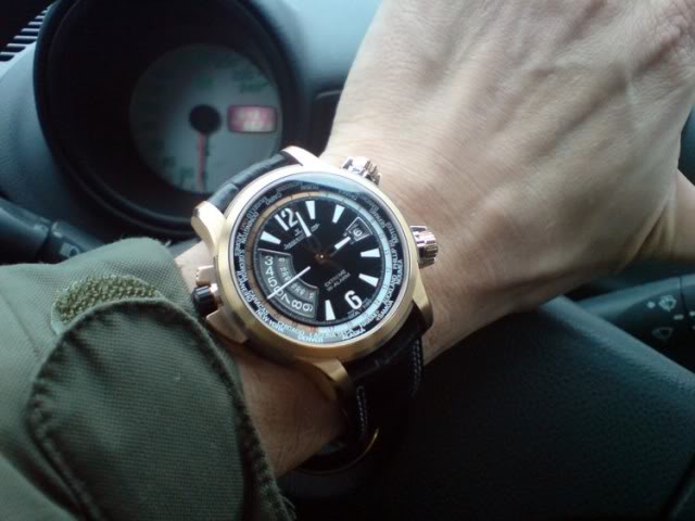 Indeed, in the same vein as the chronograph, JLC decided to keep things simple here and to focus only on the essentials, removing the hand-indicated date and power reserve indicator, which are normally placed on the upper half of the dial. The base movement remains the same as other Geographic models, the in-house calibre 939B/1 (automatic, solid gold rotor, nice decoration, 4Hz frequency, 43 hours power reserve), with “1000 Hours Control” certification.