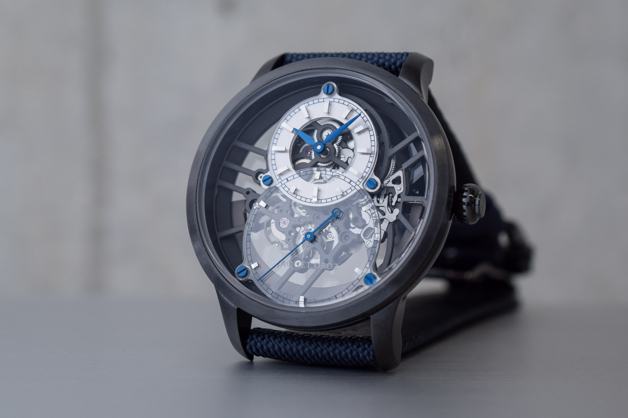Inspired by a pocket watch created by Pierre Jaquet-Droz in the 18th century, the Grande Seconde embodies the essential Jaquet Droz style. Its artful simplicity feels timeless yet modern. With the Grande Seconde Skelet-One introduced in 2018, Jaquet Droz ventured into a more technical and dynamic territory. Doing away with its dial, it offers a new design language for the brand. As a preview of its 2019 collection, the brand now releases a new, more modern version of the model clad in black and blue. Here’s an early hands-on look.