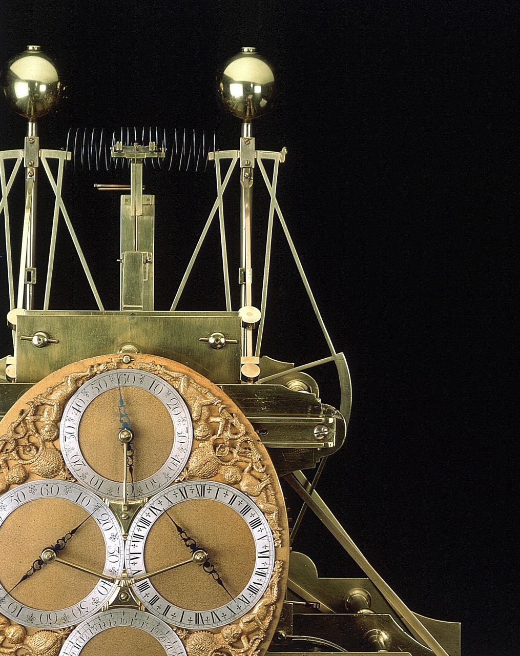 Look closely, and the clarity and focus that Harrison brought to the problem is readily apparent: the clock is dominated by two large brass pendulums that move in opposition to each other, linked by coiled springs and crossing ribbons and designed to counter the influence of gravity on their oscillations – the pendulums would cancel each other out so negating the movement of the ship. There are mechanisms to compensate for temperature (through materials such as bimetallic strips and geometry), friction mitigation (such as the use of self-lubricating lignum vitae) and a system known as “maintaining power” to maintain drive (and hence, accurate timekeeping) during winding and, to crown it all, the Grasshopper escapement with its light-touch “springy” pallets that proved almost friction-free.