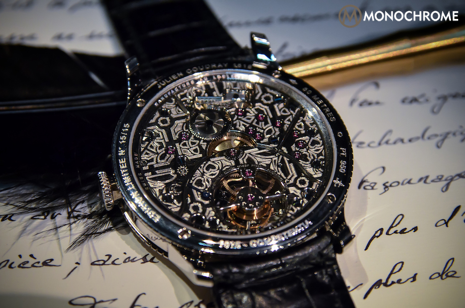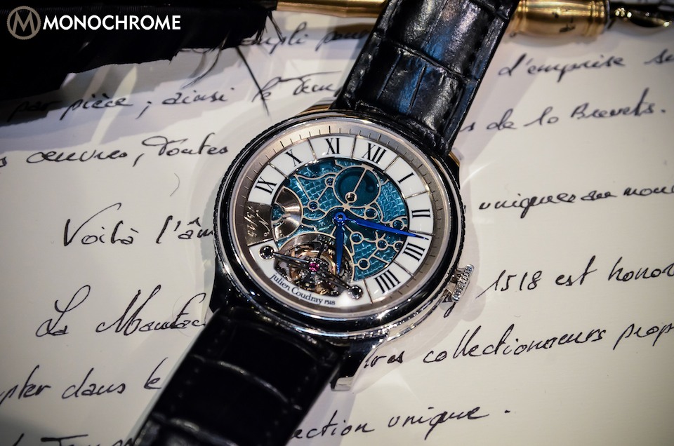 The name Julien Coudray 1518 is a tribute to a French watchmaker (Julien Coudray) who, in 1518, had been the first to create “portable” watch movements, integrated into the handle of daggers. The approach of the brand is to recreate the idea, the way of manufacturing, not to actually reproduce Coudray’s models from the 16th Century. In those days, watchmakers had to invent processes, tools and unique skills. Fabien Lamarche wants to continue in that path.