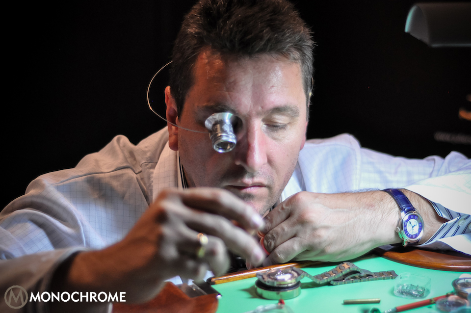 Before creating Julien Coudray 1518, Fabien Lamarche occupied virtually all jobs related to watch development and production, such as being a restorer of antique watches, Breguet’s process manager, Roger Dubuis’s product director and Zenith’s head of the prototype department. Fabien is never in a rush. He is the reflection of his creations and methods: raw but pure and most respectful for traditions. His objective, before creating his manufacture, was to learn every aspect of a watch’s construction in order to create a totally independent manufacture, built around a team of 40 experts, from enameling to engraving to polishing. That’s what permits Julien Coudray 1518 to be one the rare manufactures able to produce 98% of their watches’ parts.